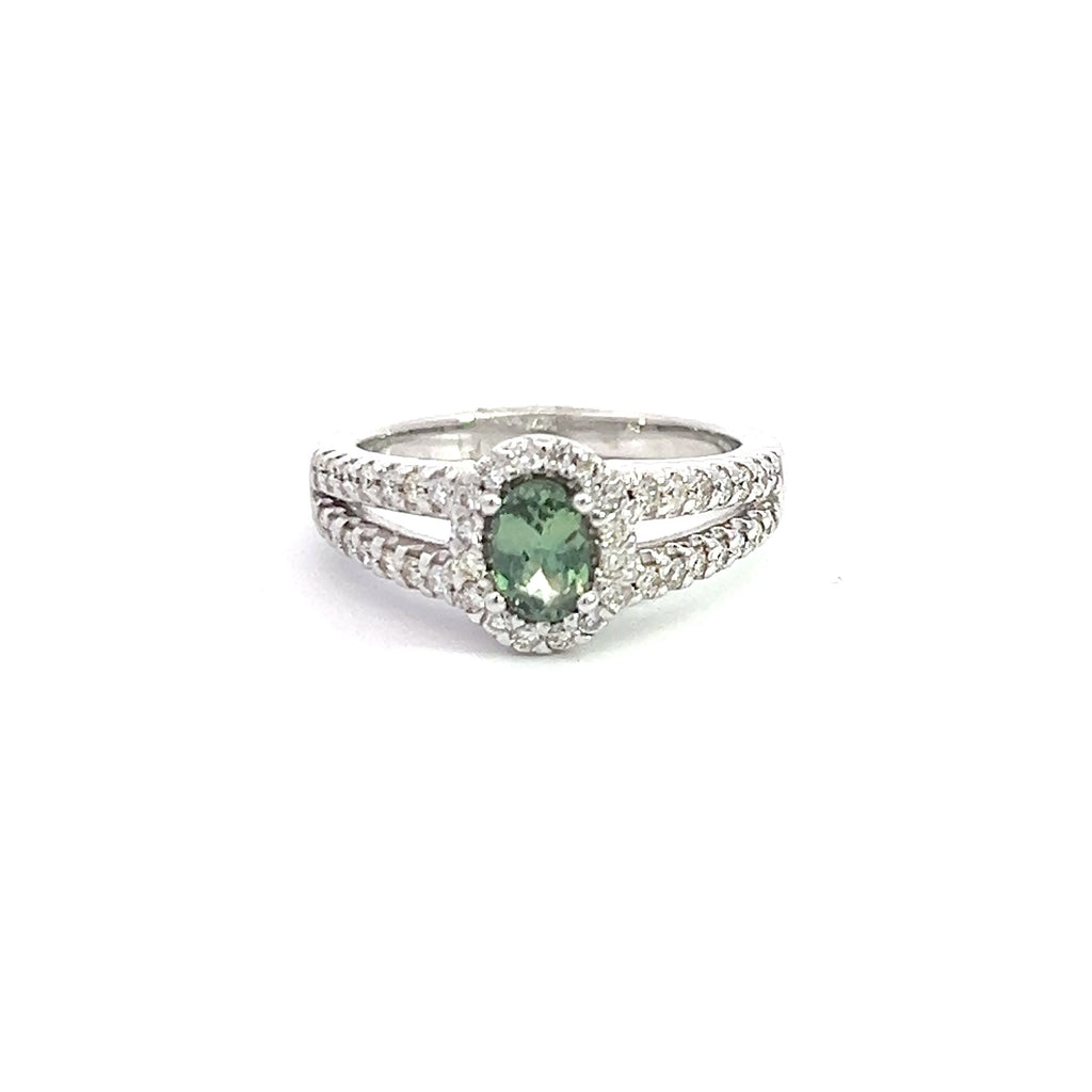 14K WHITE GOLD ALEXANDRITE AND DIAMOND RING 1CT
