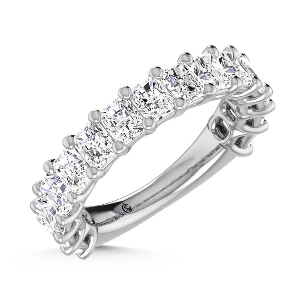 14K White Gold Diamond 2 3/8 Ct.Tw. Radiant Shape Three Forth way Wedding Band