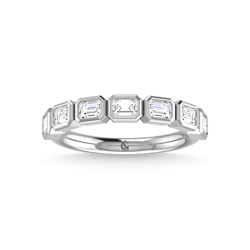 14K White Gold Lab Grown Diamond 1 Ct.Tw. Emerald Shape Three Forth Way Wedding Band (size 6.5)