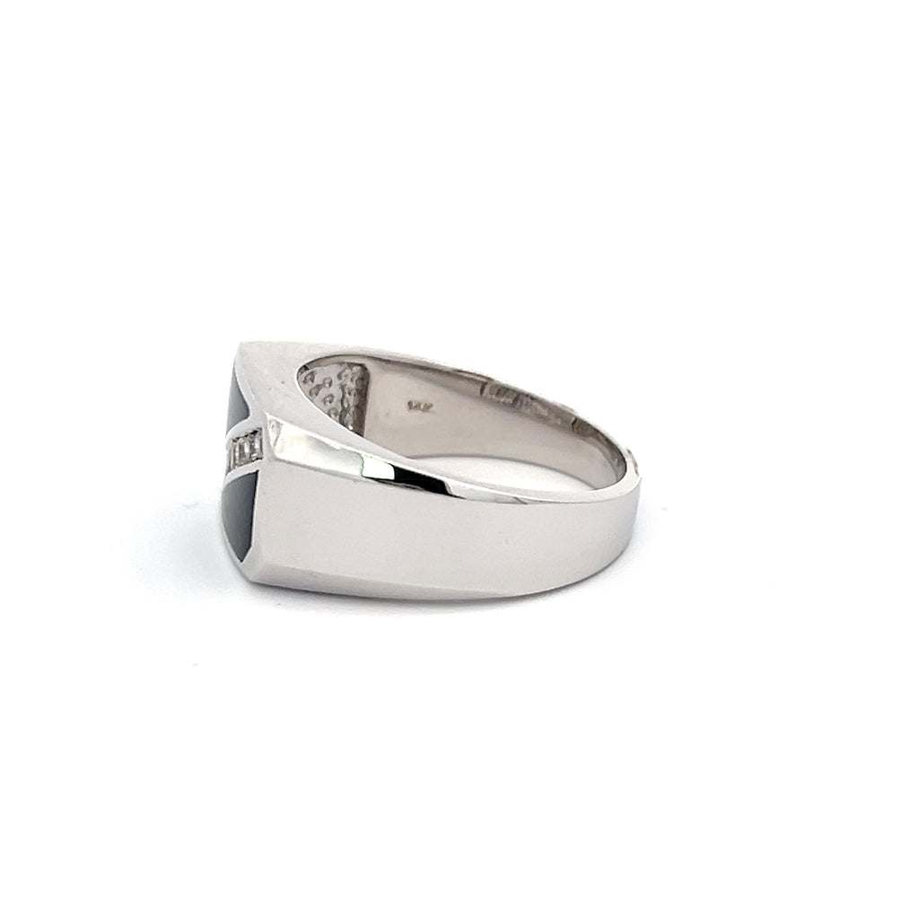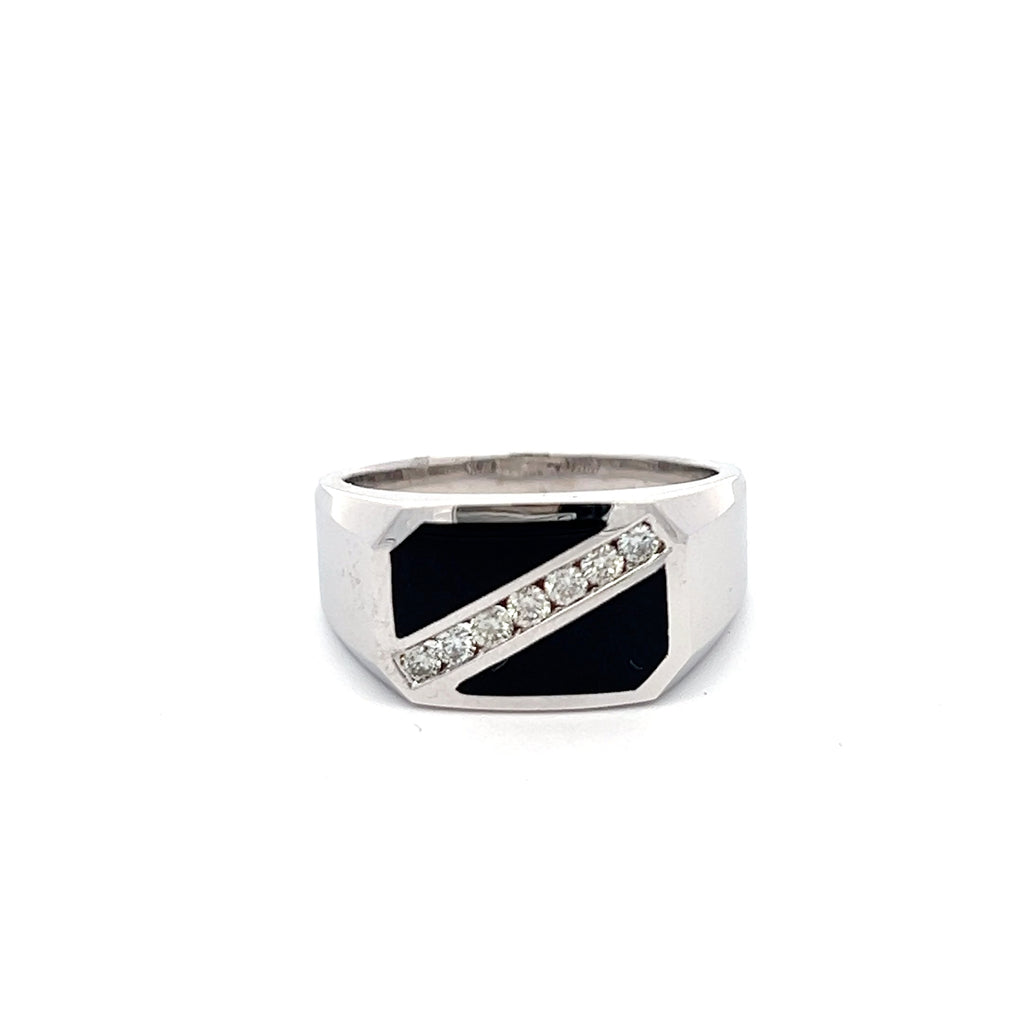 14K WHITE GOLD ONYX DIAMOND RING 0.30 CTS