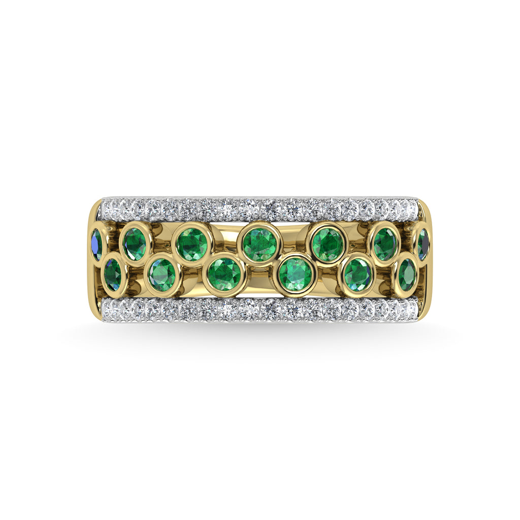 14K Yellow Gold Diamond and Emerald 1/2 Ct.Tw. Fashion Ring