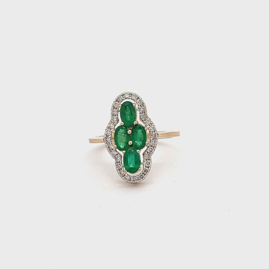 14K YELLOW GOLD EMERALD DIAMOND RING 1.15 CTS