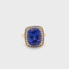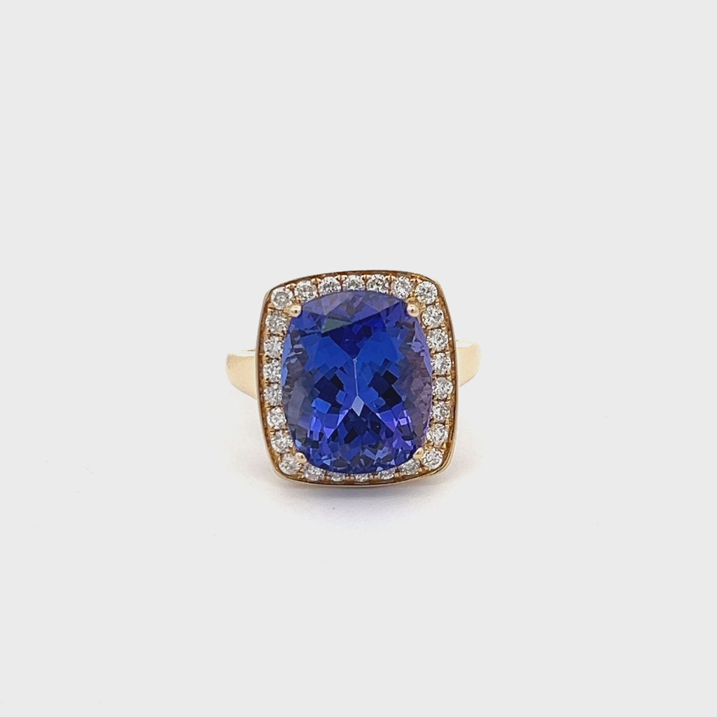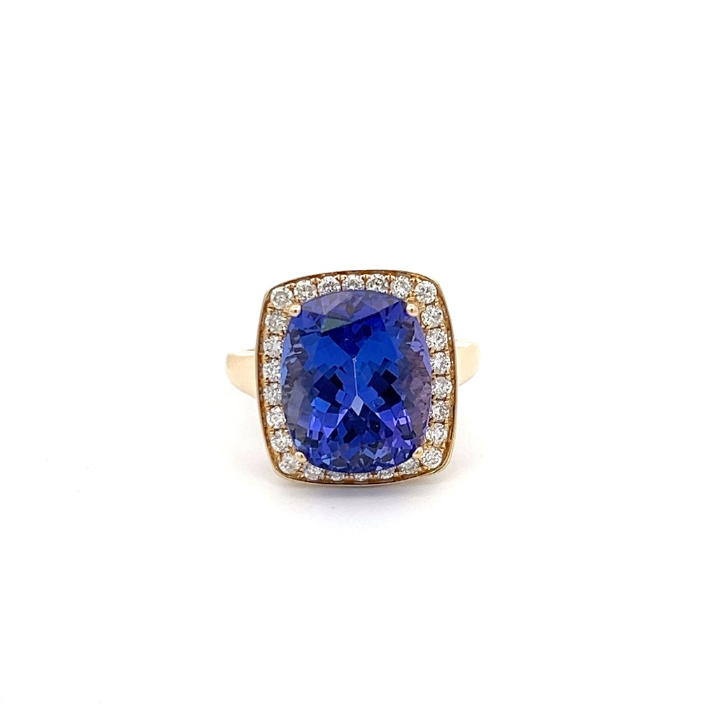 14K YELLOW GOLD TANZANITE RING WITH DIAMOND HALO 7.80 CTS