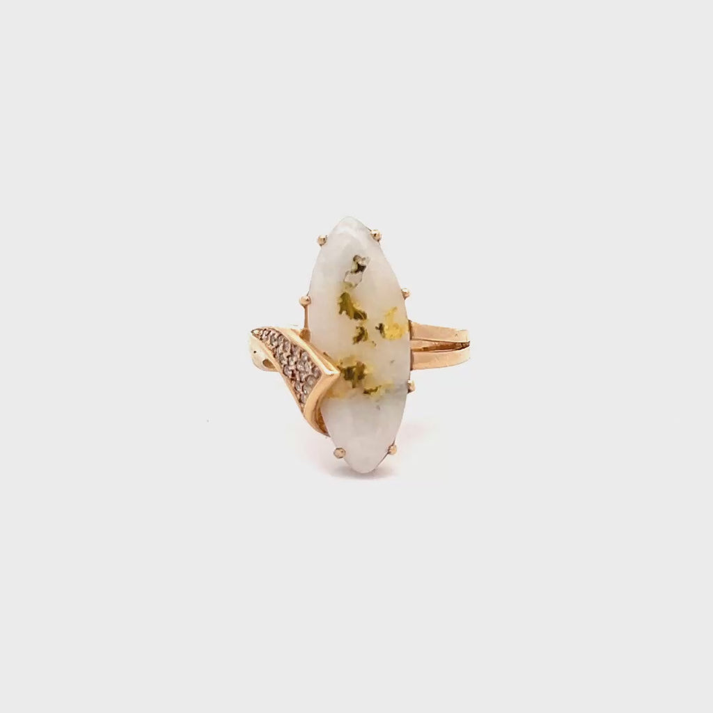 Gold Quartz Diamond Ring 14k Yellow Gold