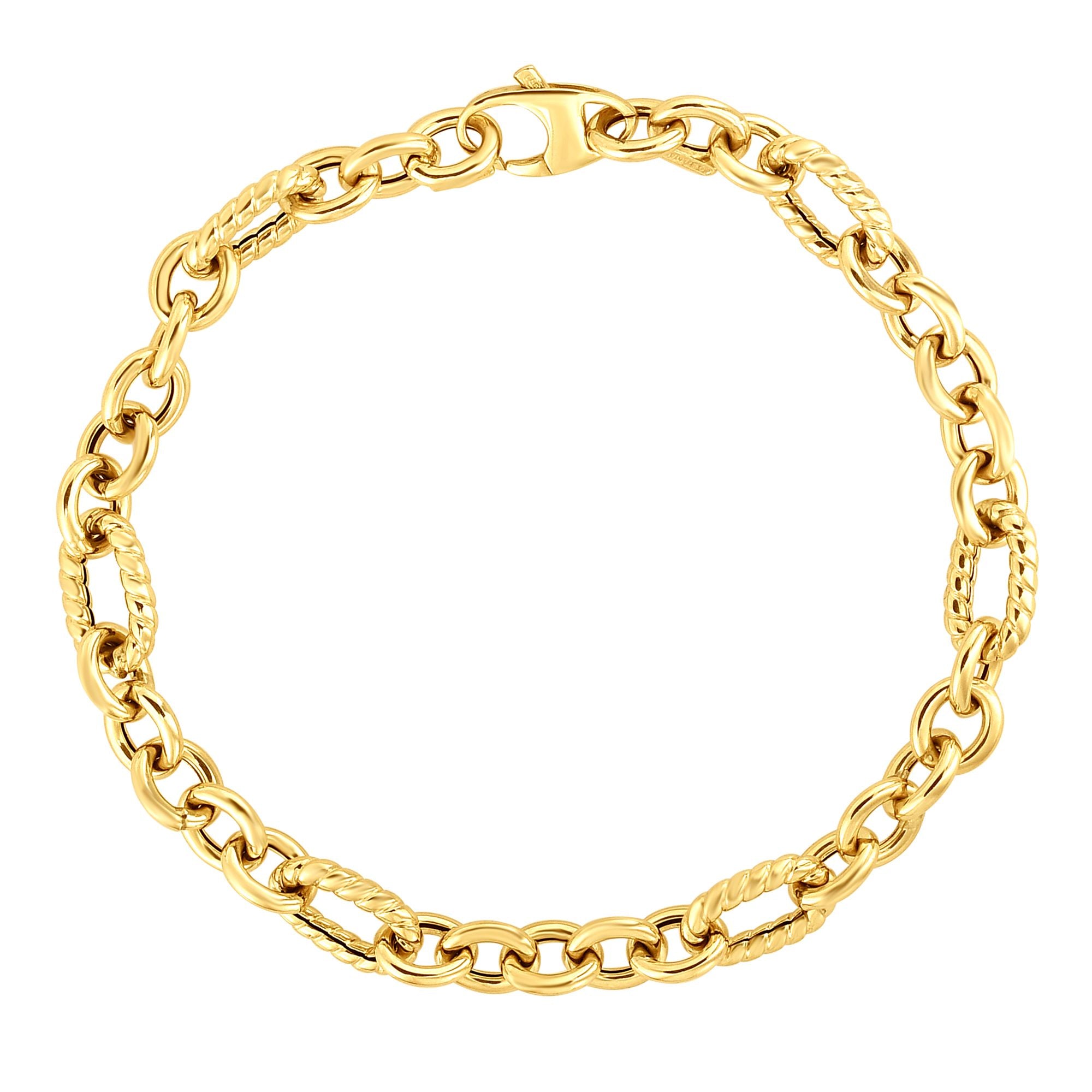 14K Gold Italian Cable Textured Oval Link Bracelet