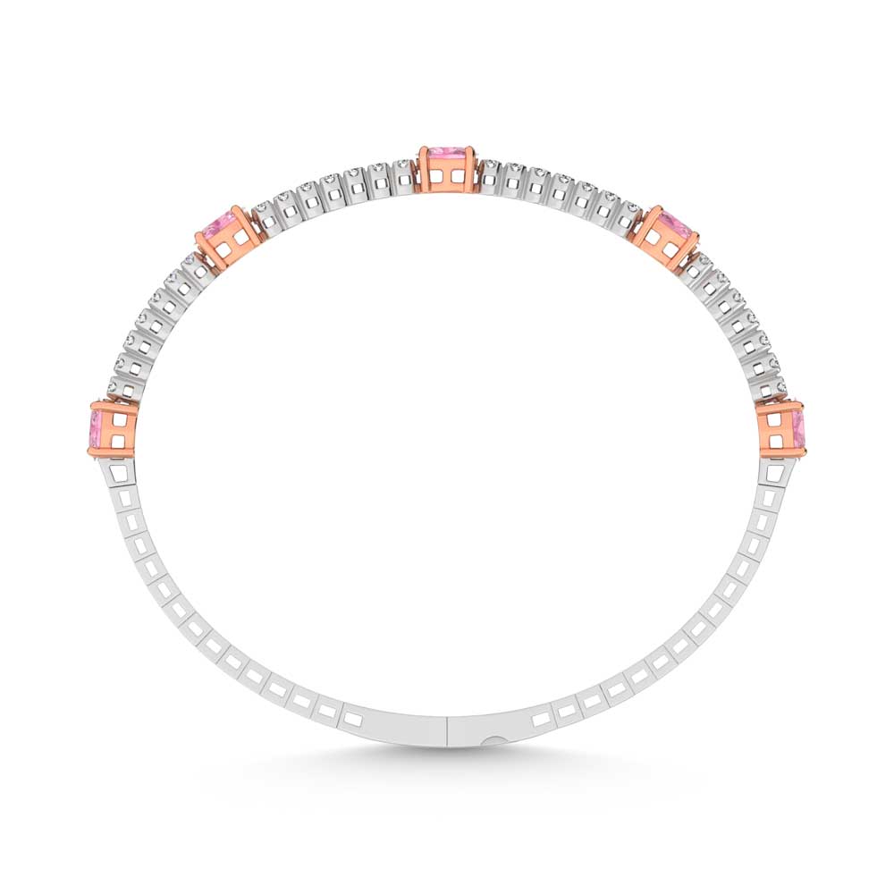 14K White Gold 3 5/8 Ct.Tw. white and Oval Shape Pink Lab Grown Diamond Bangle