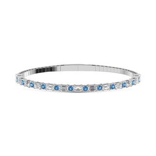 14K White Gold 1 Ct.Tw. Alternate 3 white and 3 Blue Lab Grown Diamond Bangle