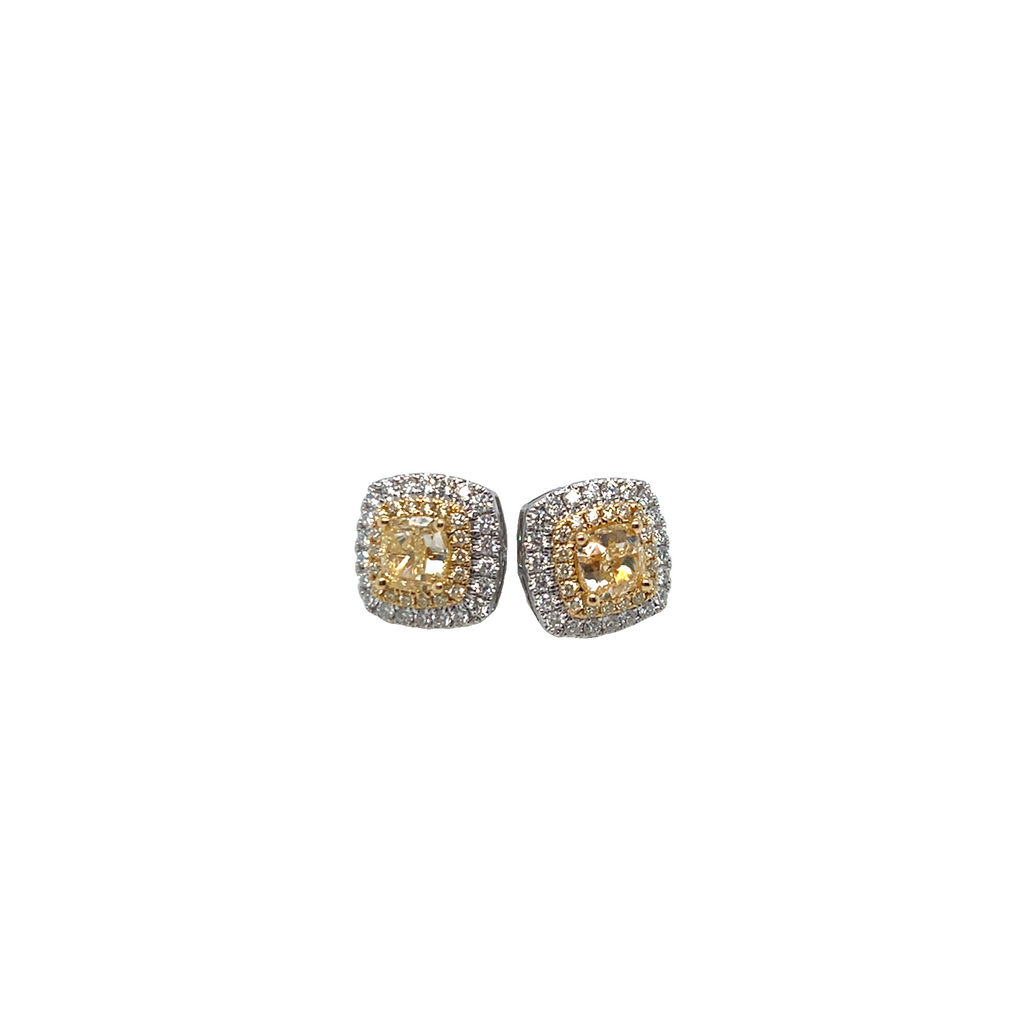 18K TWO TONE NATURAL CANARY DIAMOND EARRINGS 2.75CT