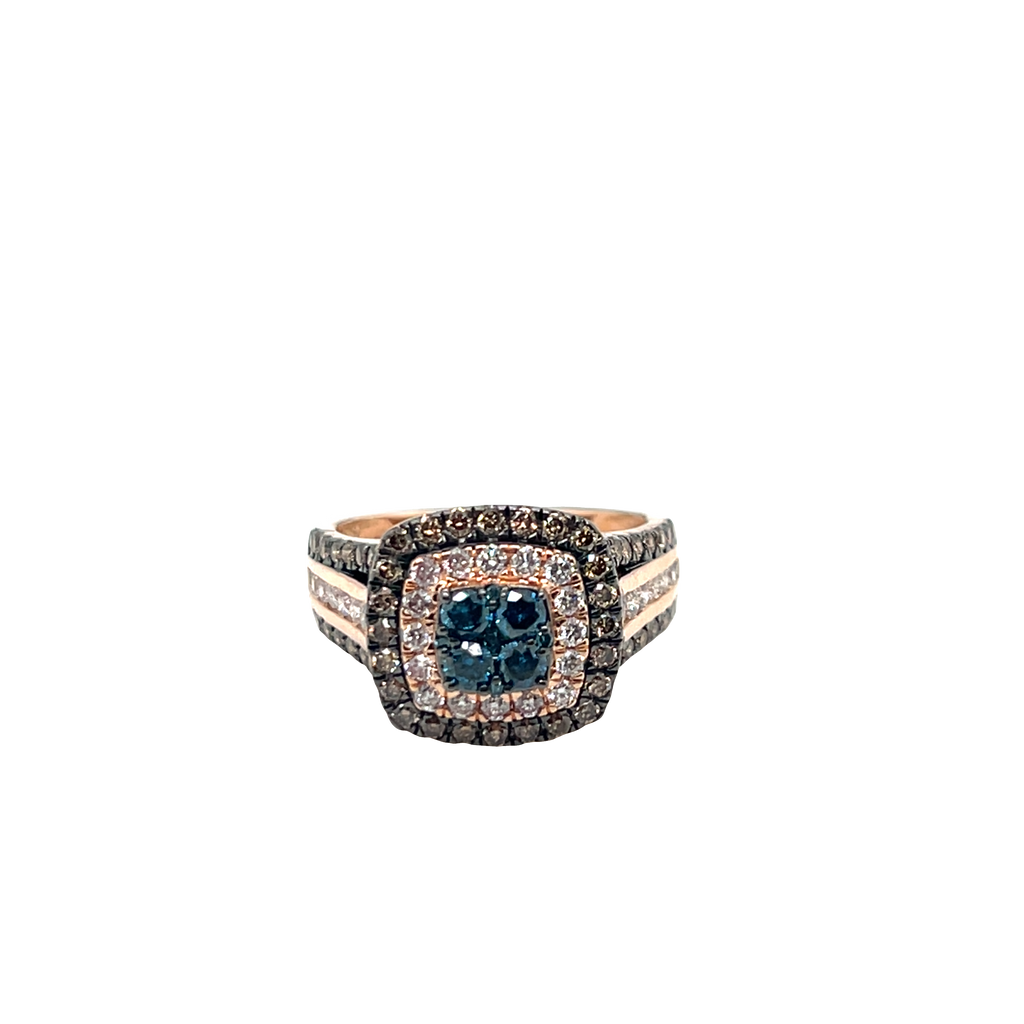 14K R/G CHAMPAGNE/BLUE DIAMONDS RING 1.50CT