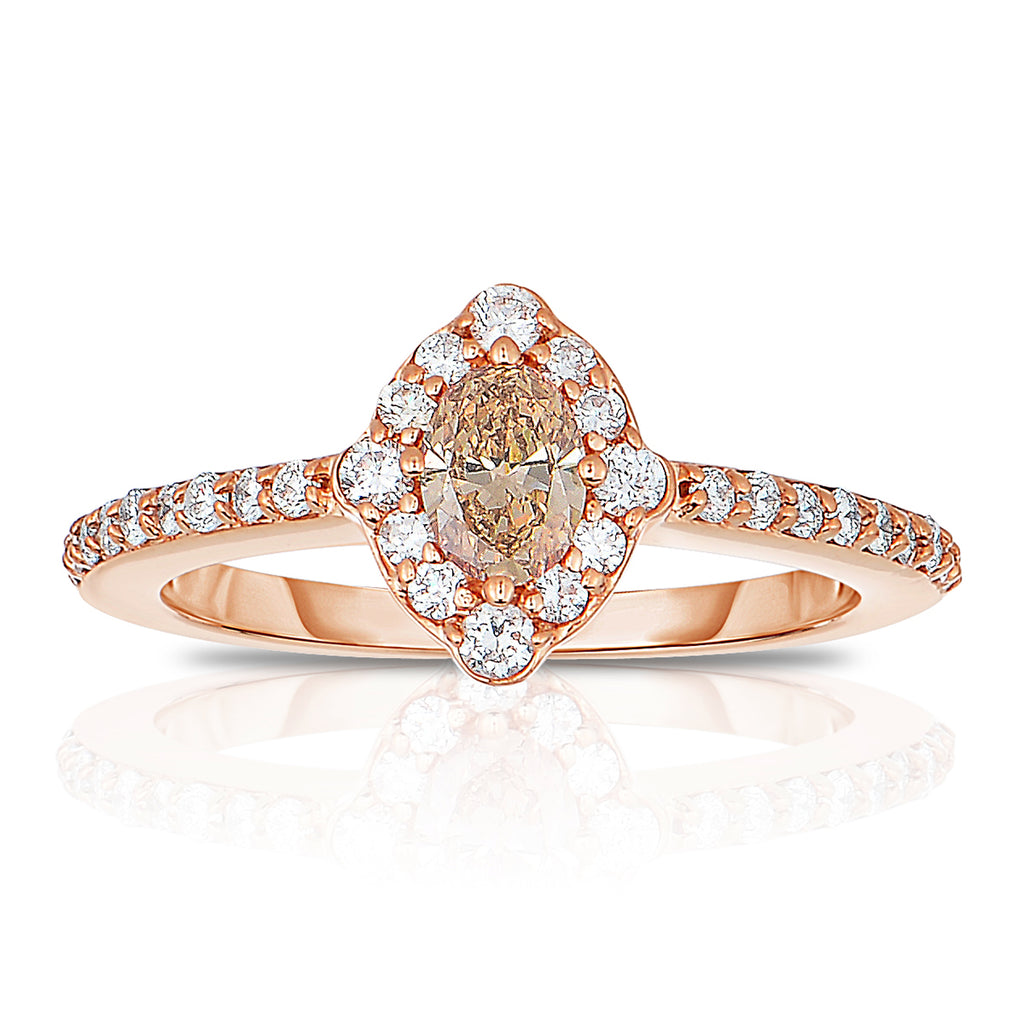14K Rose Gold Natural Champagne Oval Diamond Halo Ring