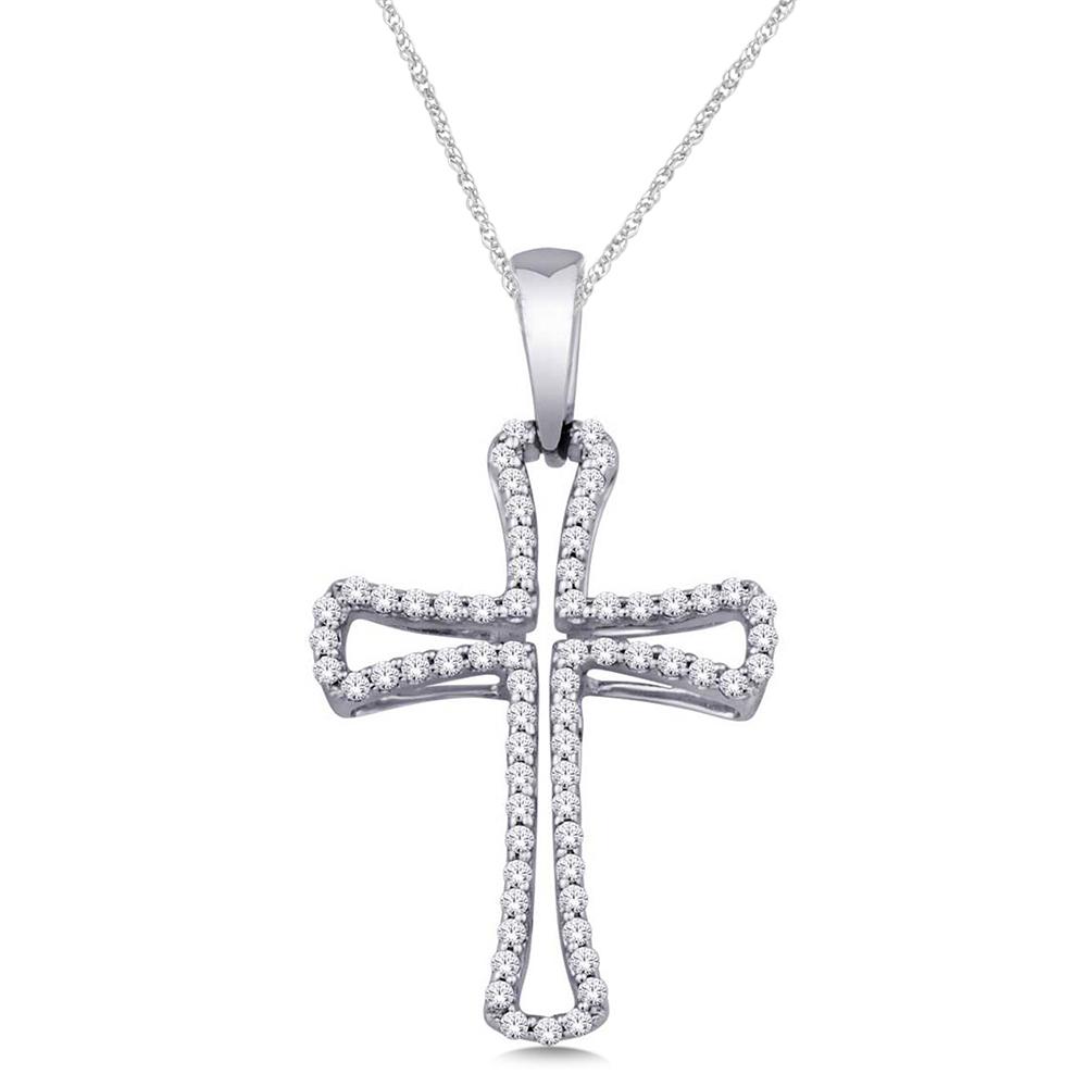 This Cross Pendant Crafted In 10K White Gold And Studded With Glittering Diamonds Weighing Approximately 1/4 Ct. Tw. Classic And Elegant, This Diamond Cross Pendant Is A Beautiful Expression Of Your Faith.