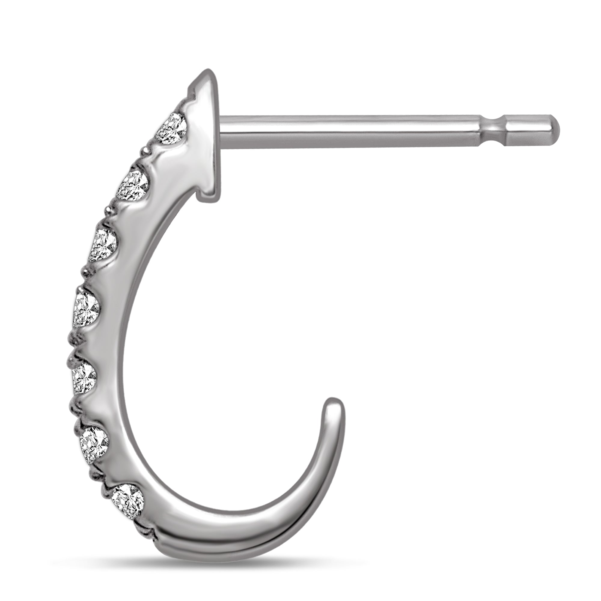 These 10K white gold J-hoop Earrings are perfectly charming, set with beautiful 1/4 ct brilliant cut diamonds in micro prong setting. Wear these post hoops for everyday posh style. Polished to a brilliant shine, these Earrings secure with friction backs.