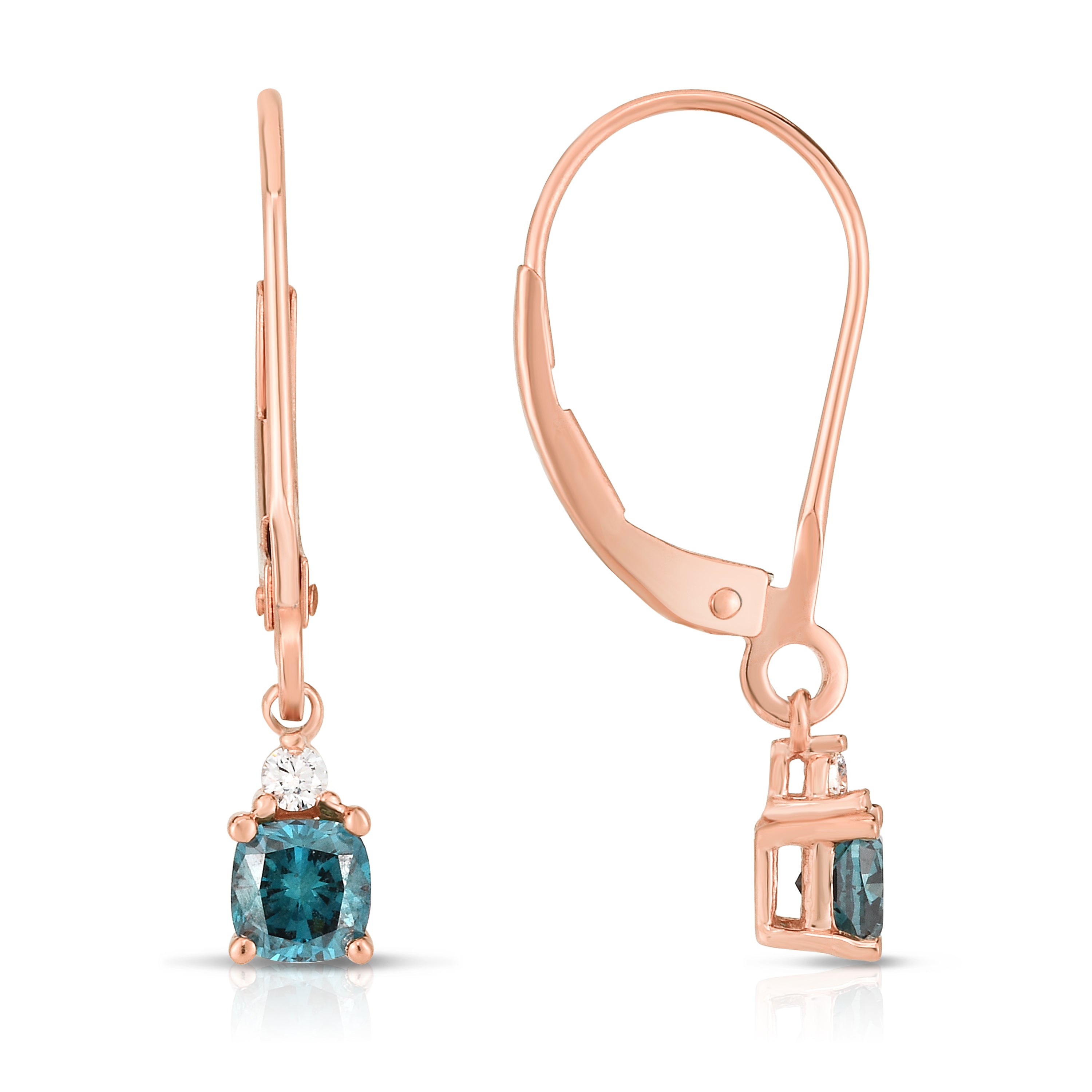 14K Rose Gold Blue Diamond Lever Back Dangling Earrings