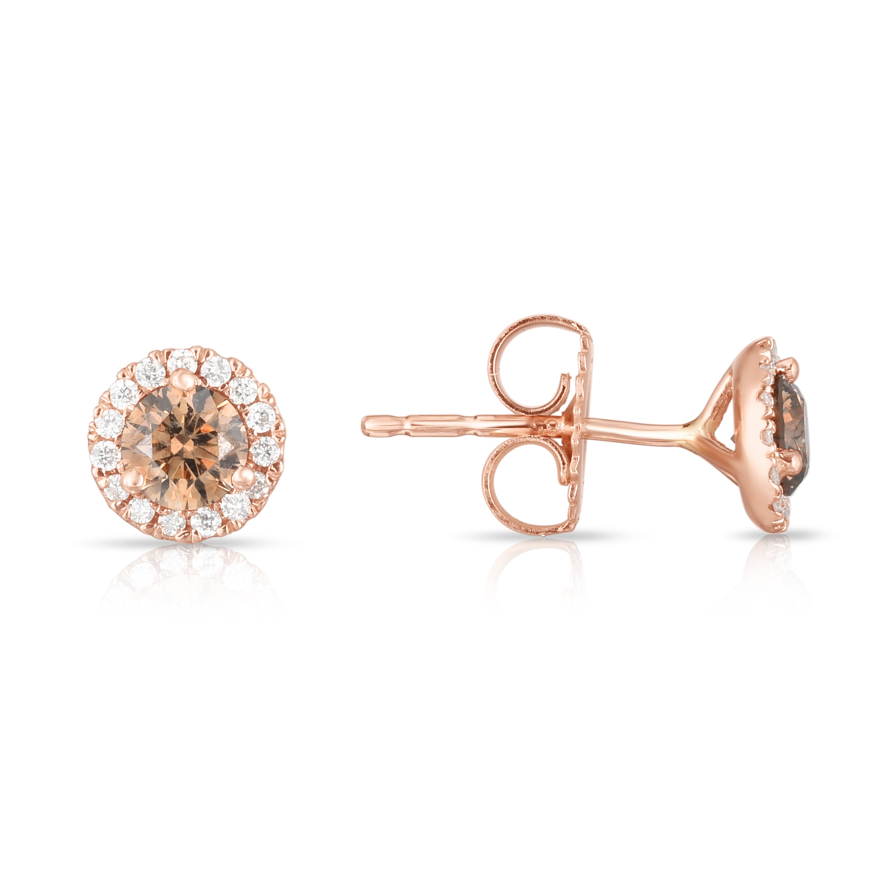 14K Rose Gold Natural Champagne Diamond Halo Stud Earrings
