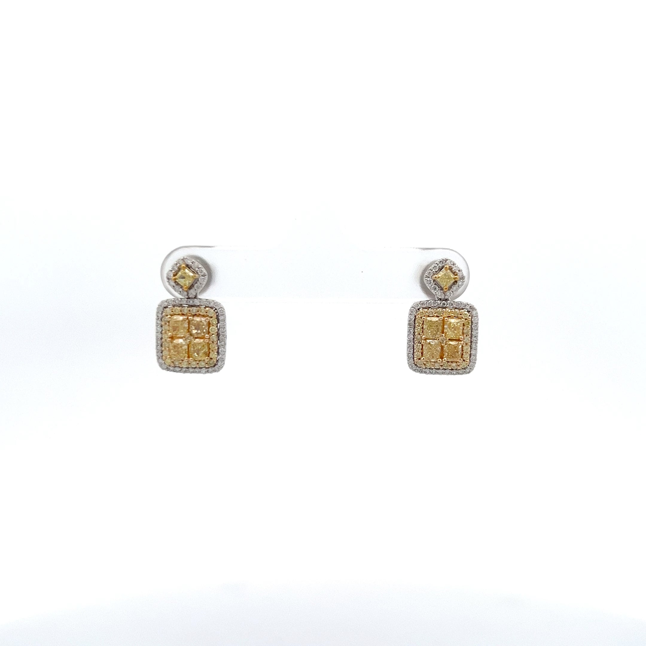 14K WHITE/YELLOW GOLD YELLOW DIAMOND EARRINGS 1.75 CTS