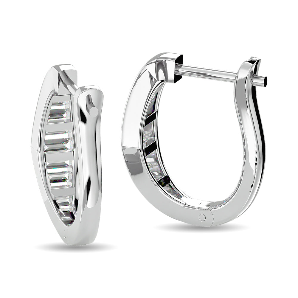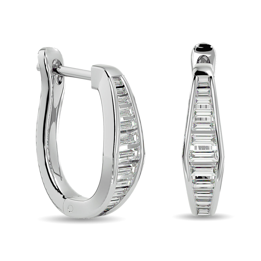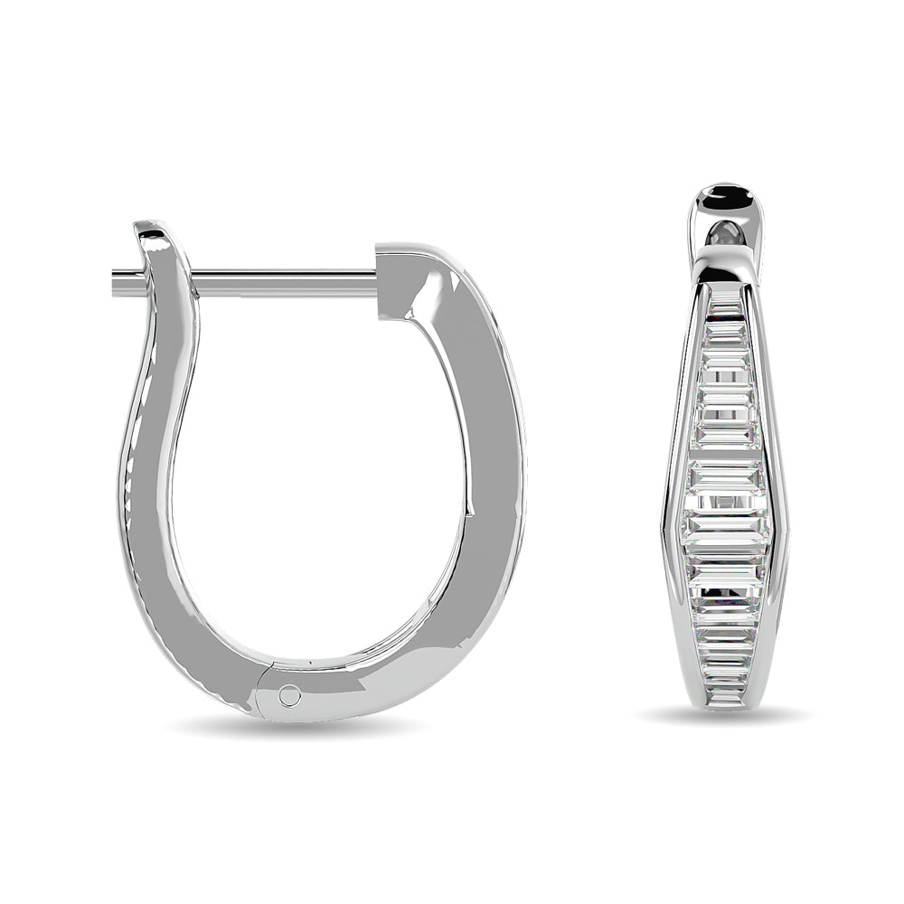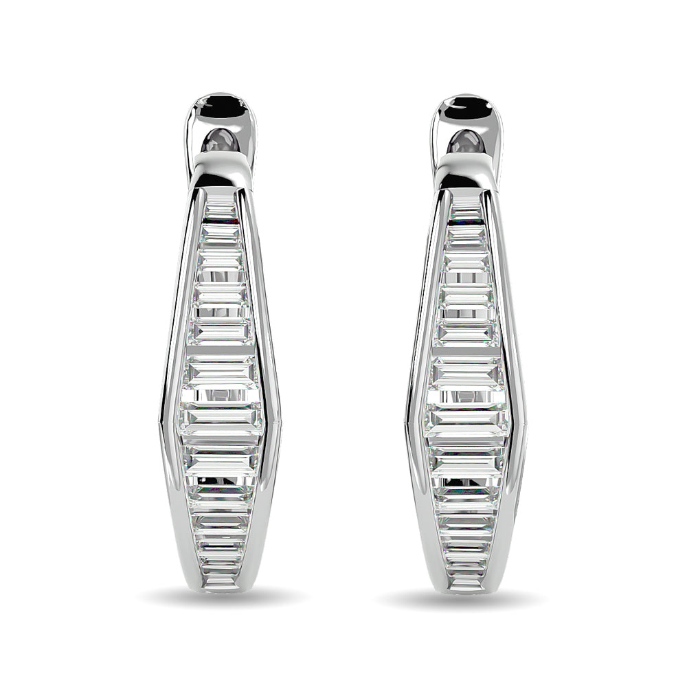 Diamond 1/2 Ct.Tw. Straight Baguette Hoop Earrings in 14K White Gold
