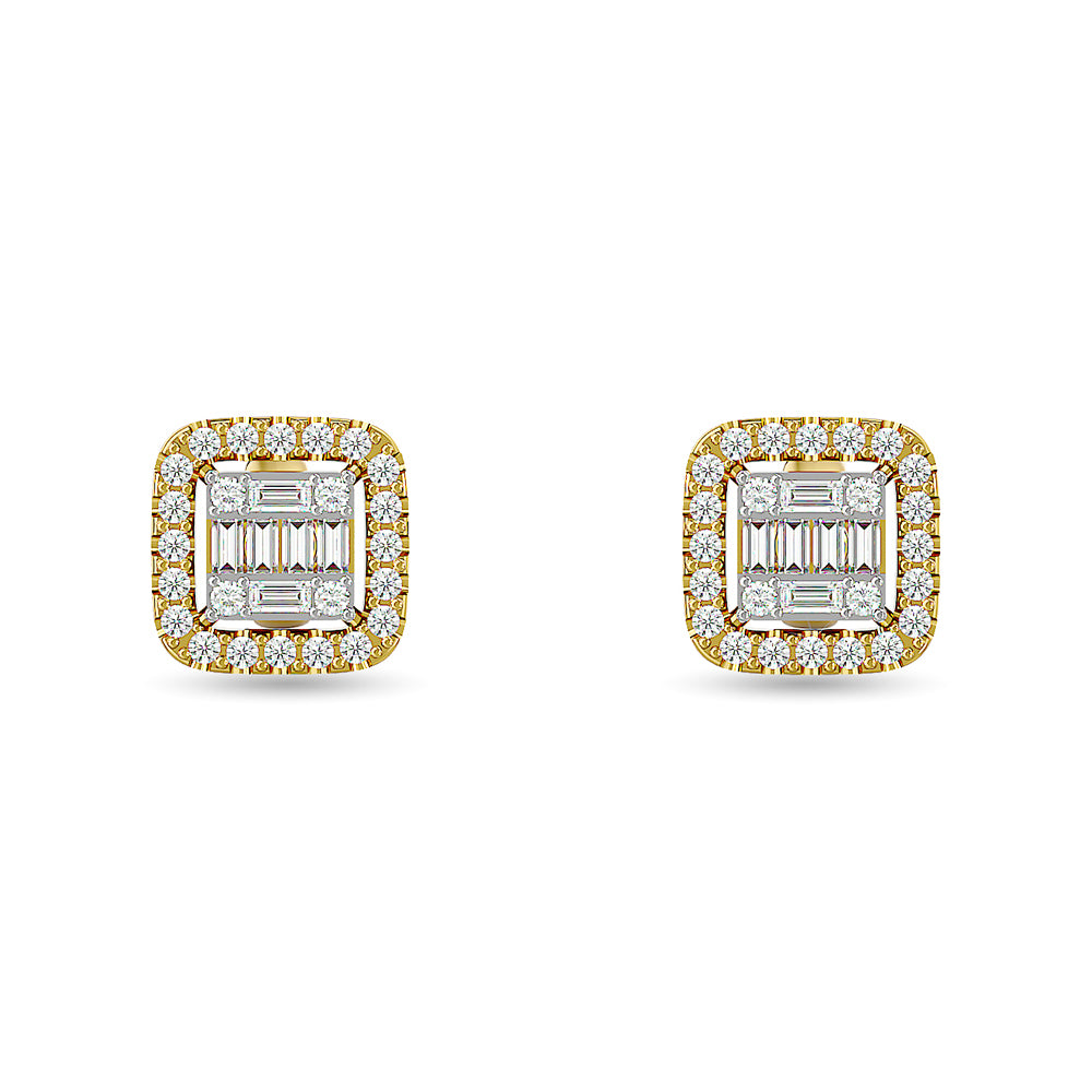 Diamond 1/3 Ct.Tw. Round and Baguette Fashion Earrings in 14K Yellow Gold