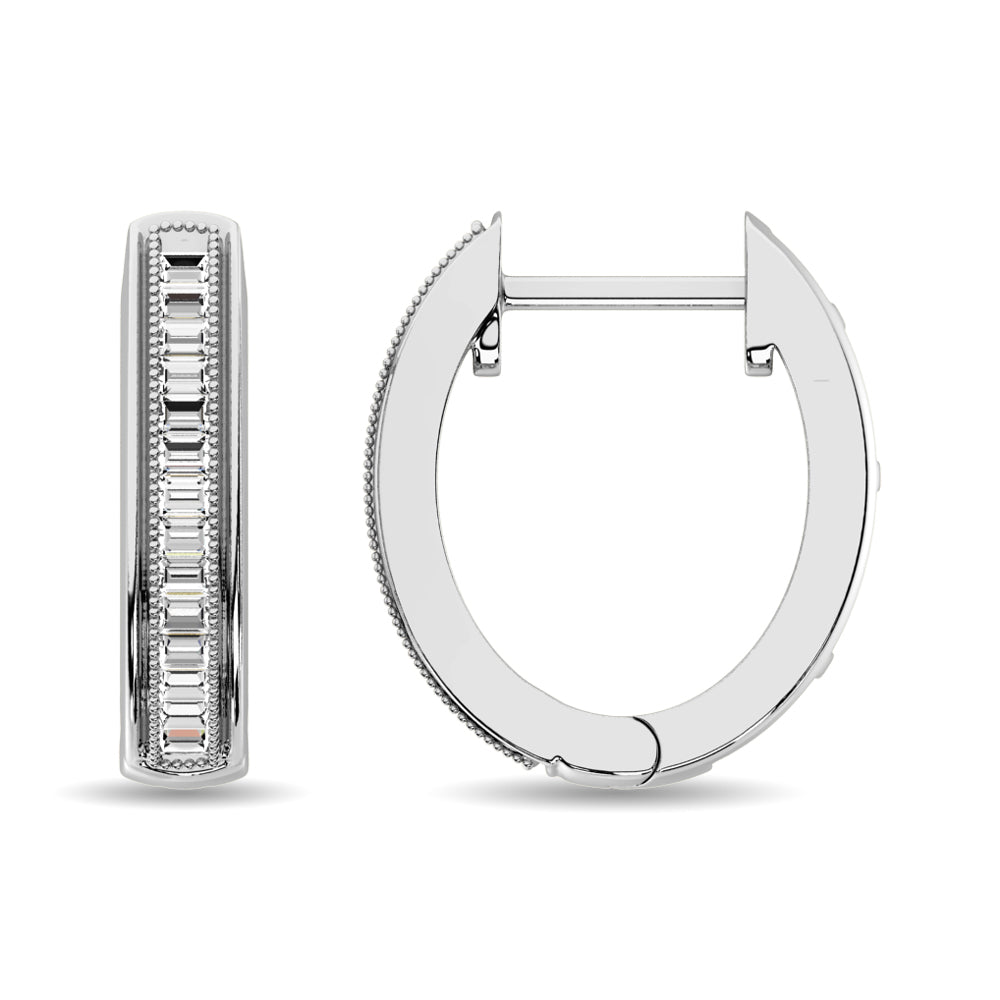 Diamond 1/6 Ct.Tw. Baguette Hoop Earrings in 10K White Gold