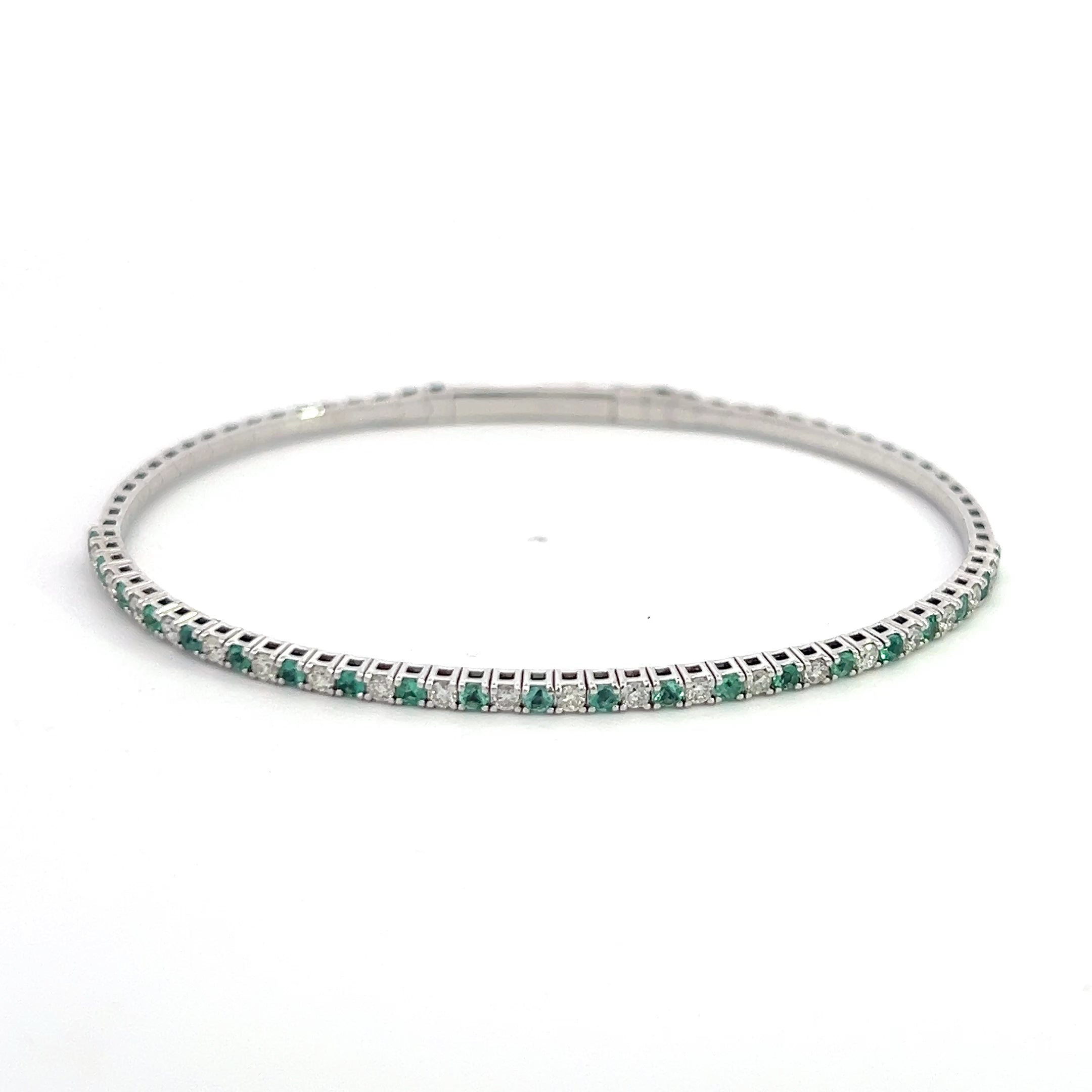 NATURAL DIAMOND AND EMERALD FLEXIBLE BANGLE 1.00+ CARATS