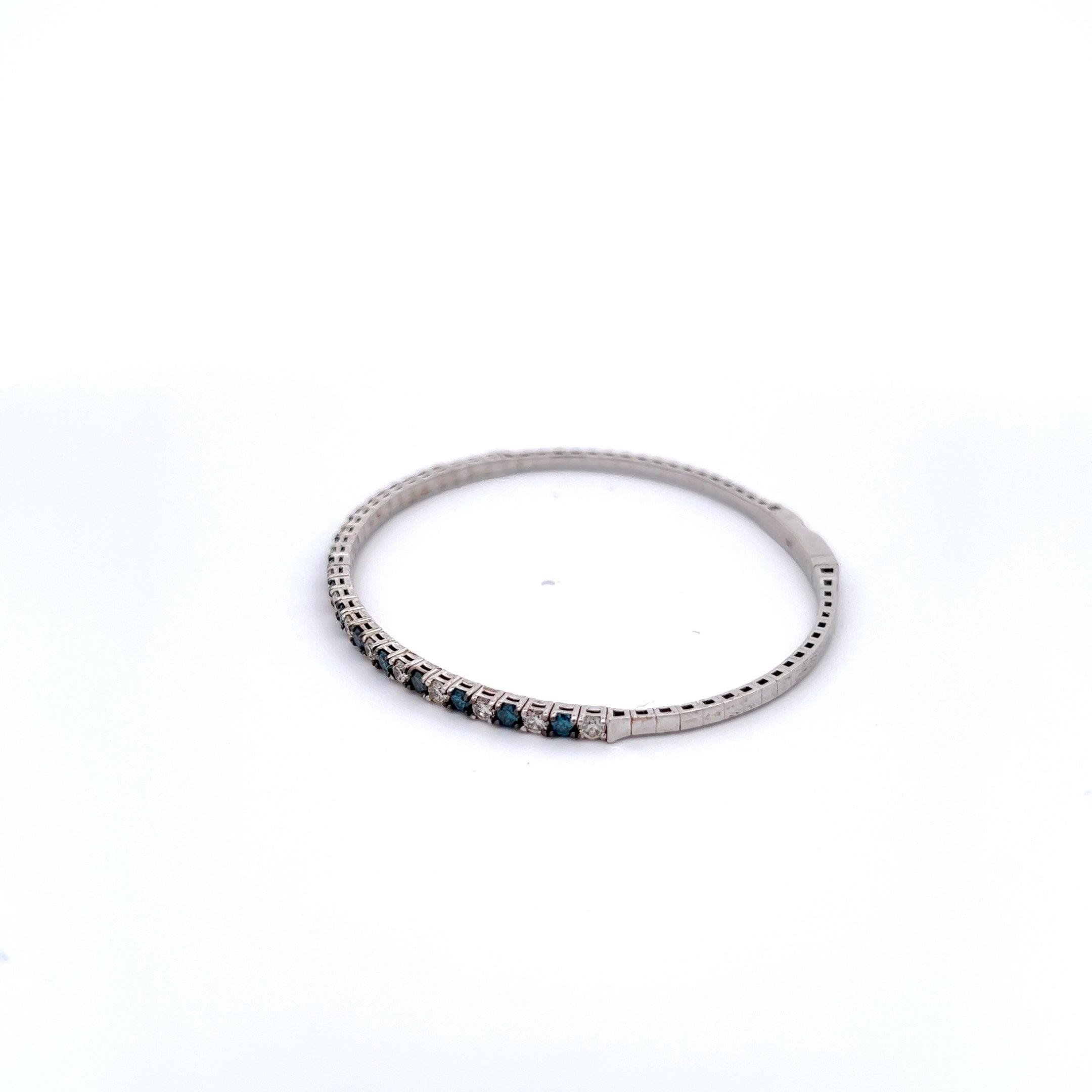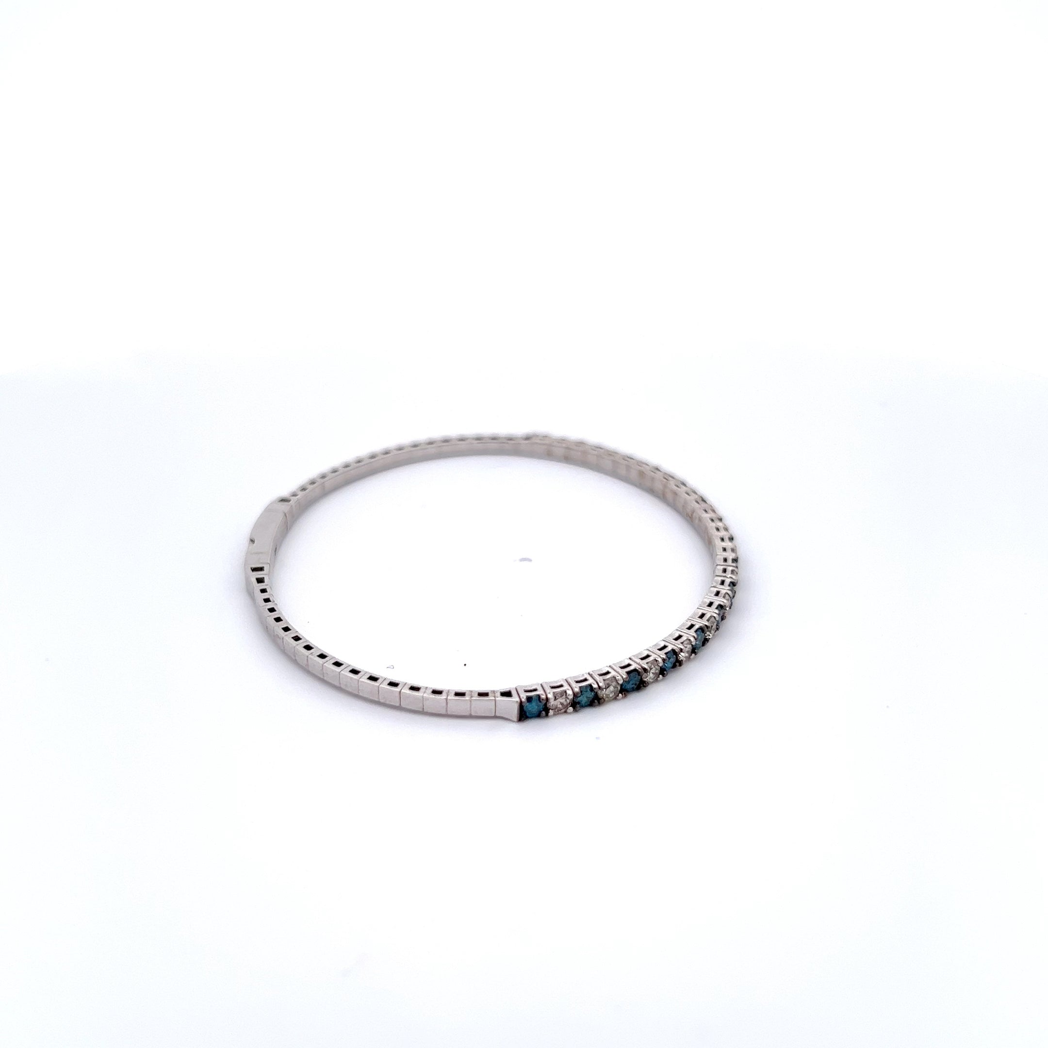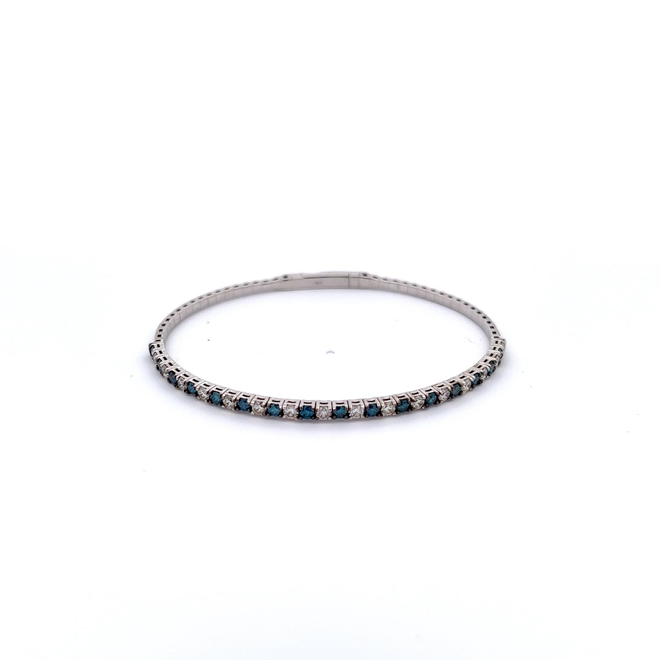 14K WHITE/BLUE DIAMOND FLEXIBLE BANGLE 2.00 CARATS