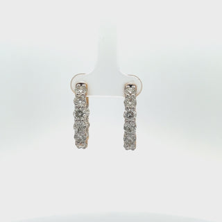 Diamonds set on the front outside and also on the back inside of the hoop with a special locking mechanism to open the earrings.