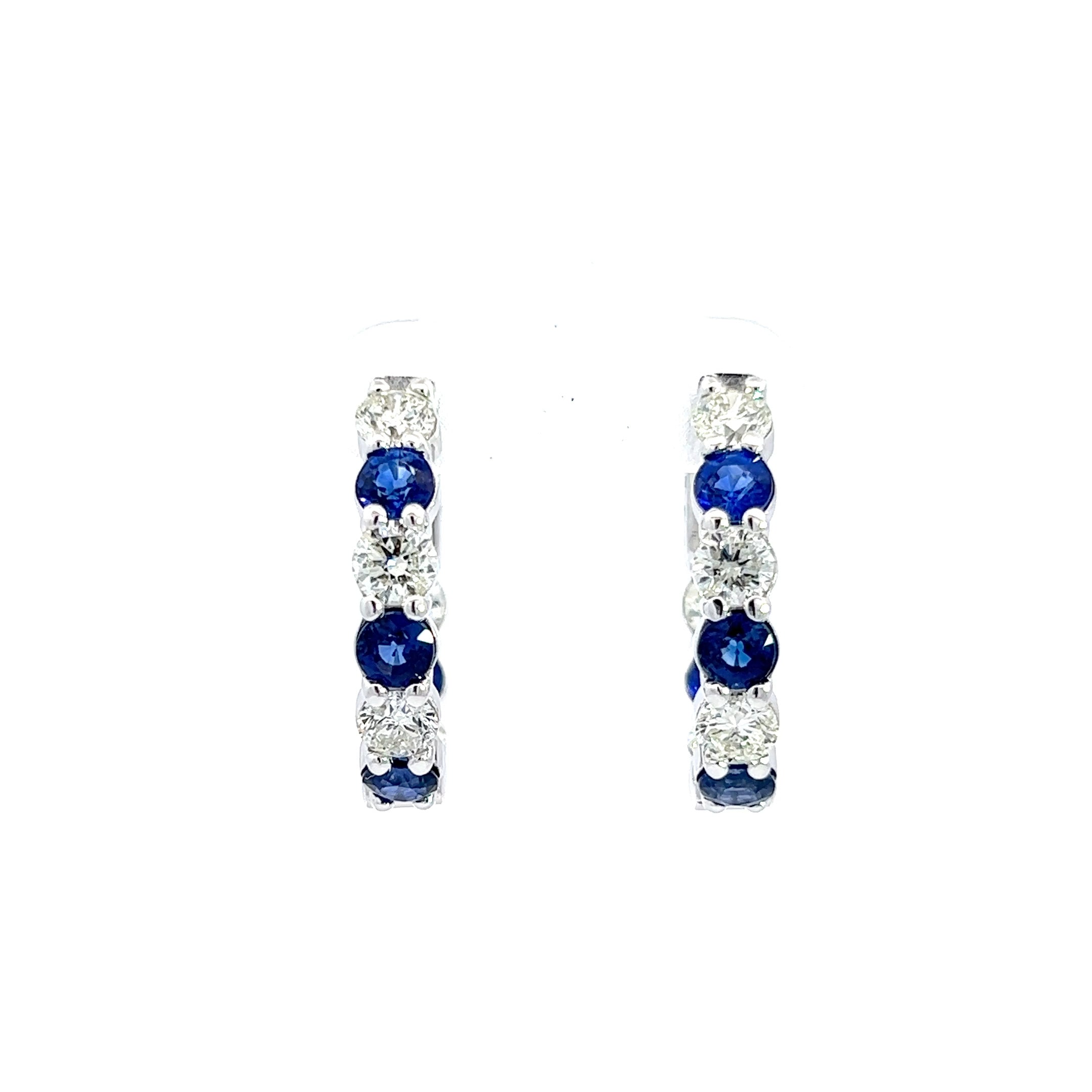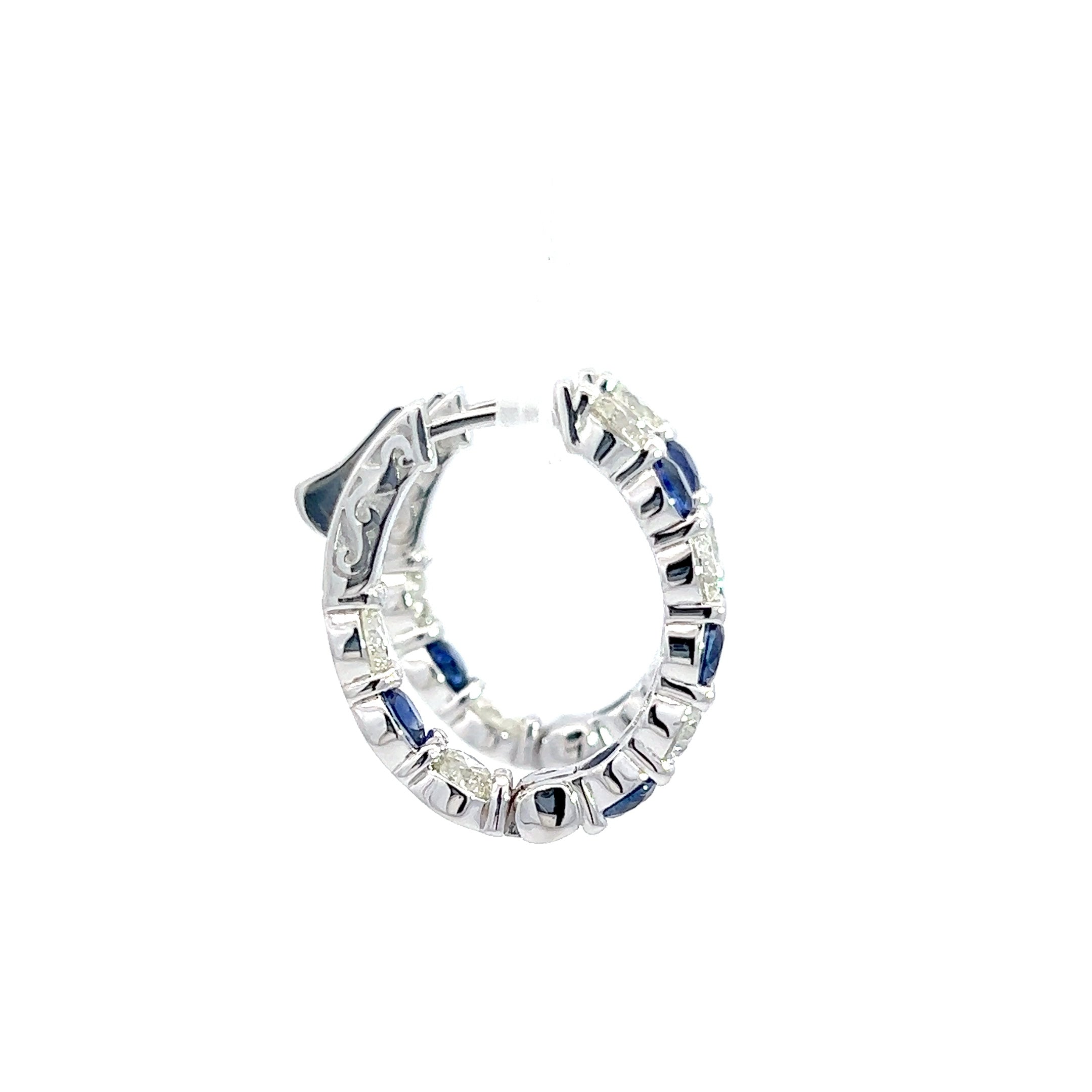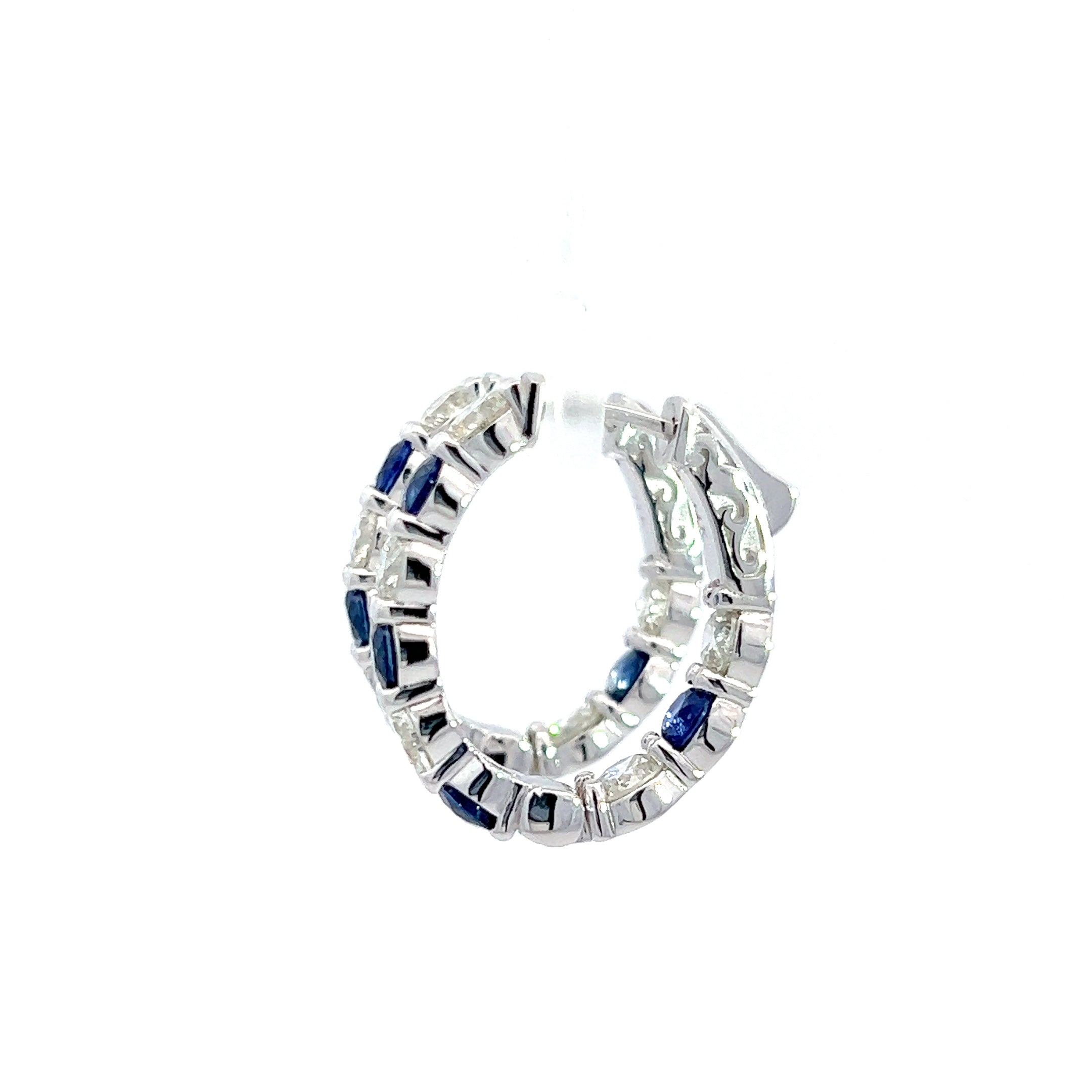 NATURAL DIAMOND AND SAPPHIRE INSIDE OUTSIDE HOOP EARRINGS