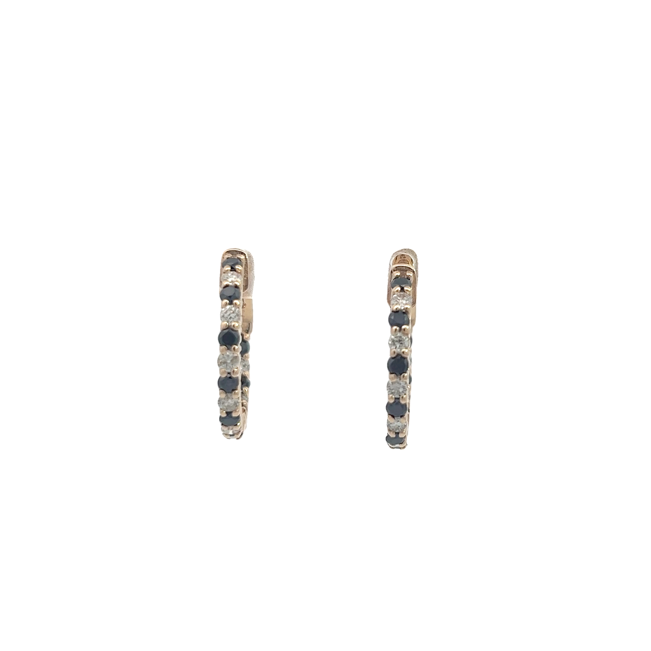 Diamonds set on the front outside and also on the back inside of the hoop with a special locking mechanism to open the earrings.