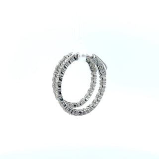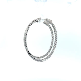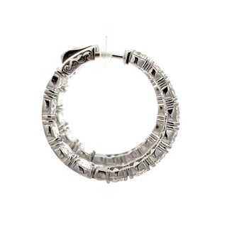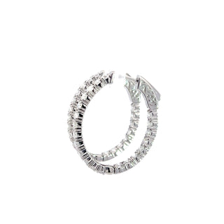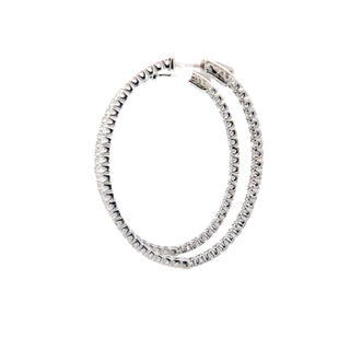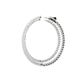 Diamonds set on the front outside and also on the back inside of the hoop with a special locking mechanism to open the earrings.