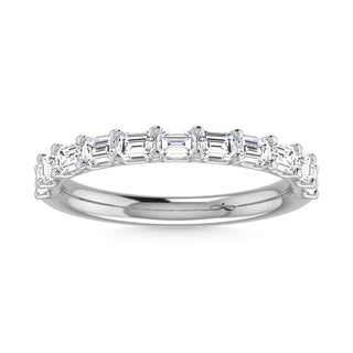 14K White Gold Lab Grown Diamond 1 Ct.Tw. Emerald Shape Half Way East West Eternity Band