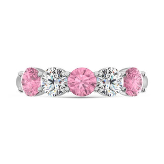 14K White Gold 1 Ct.Tw. 5 Stone Alternate White and Pink Lab Grown Diamond Band