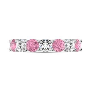 14K White Gold 1 Ct.Tw. 7 Stone Alternate White and Pink Lab Grown Diamond Band