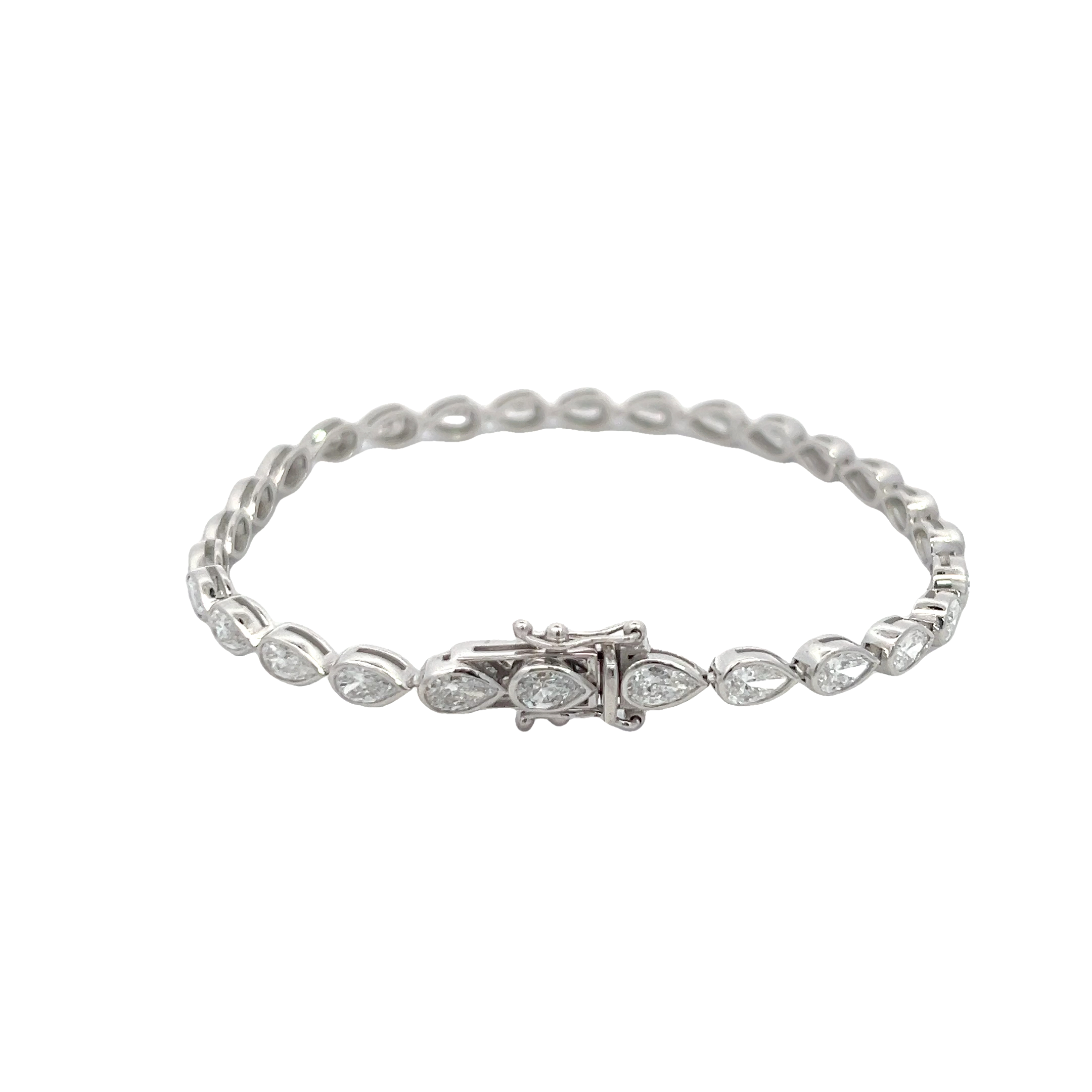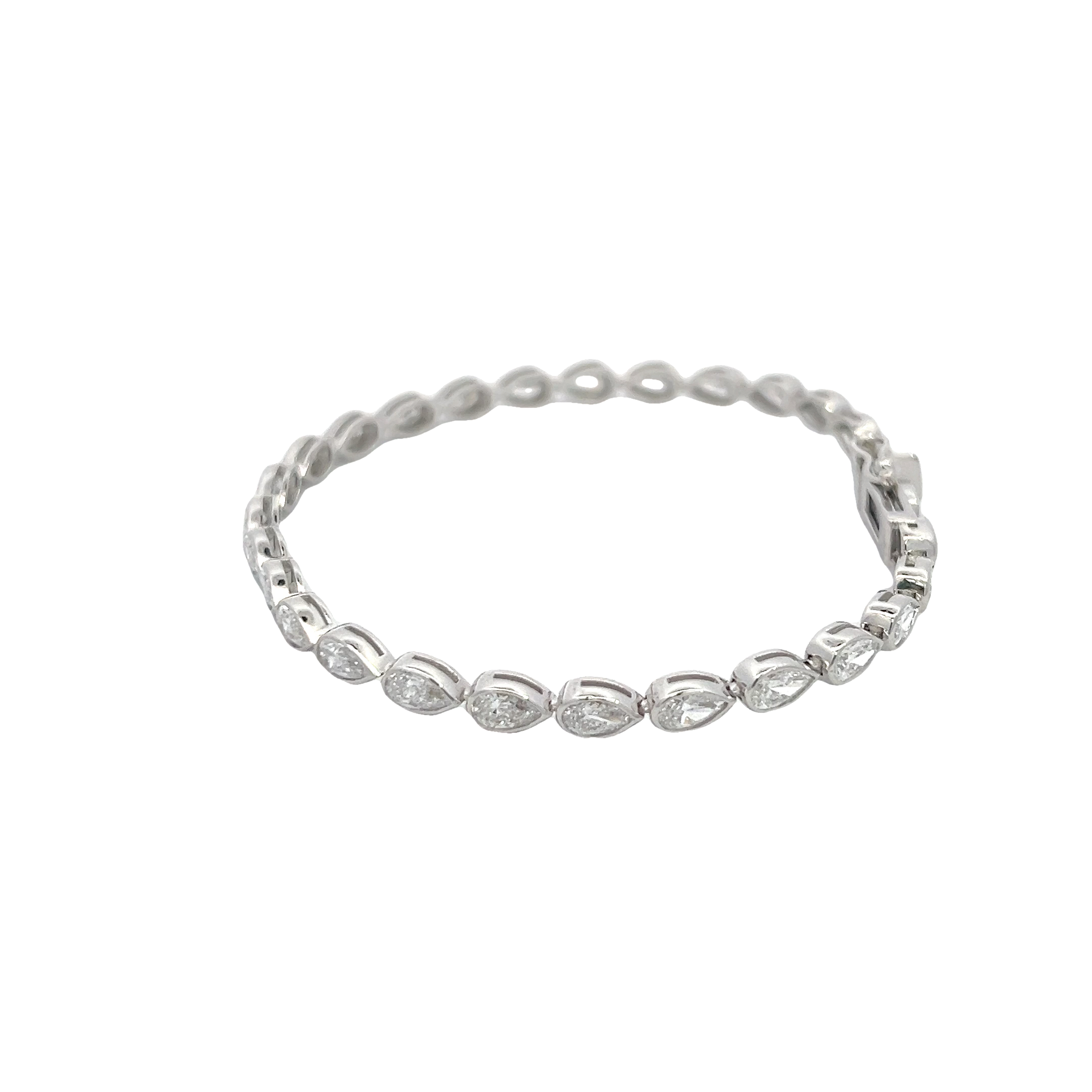Pear brilliant cut lab-grown diamonds along the length of the bracelet set in 14K gold, 7 inches long with a double safety clasp.