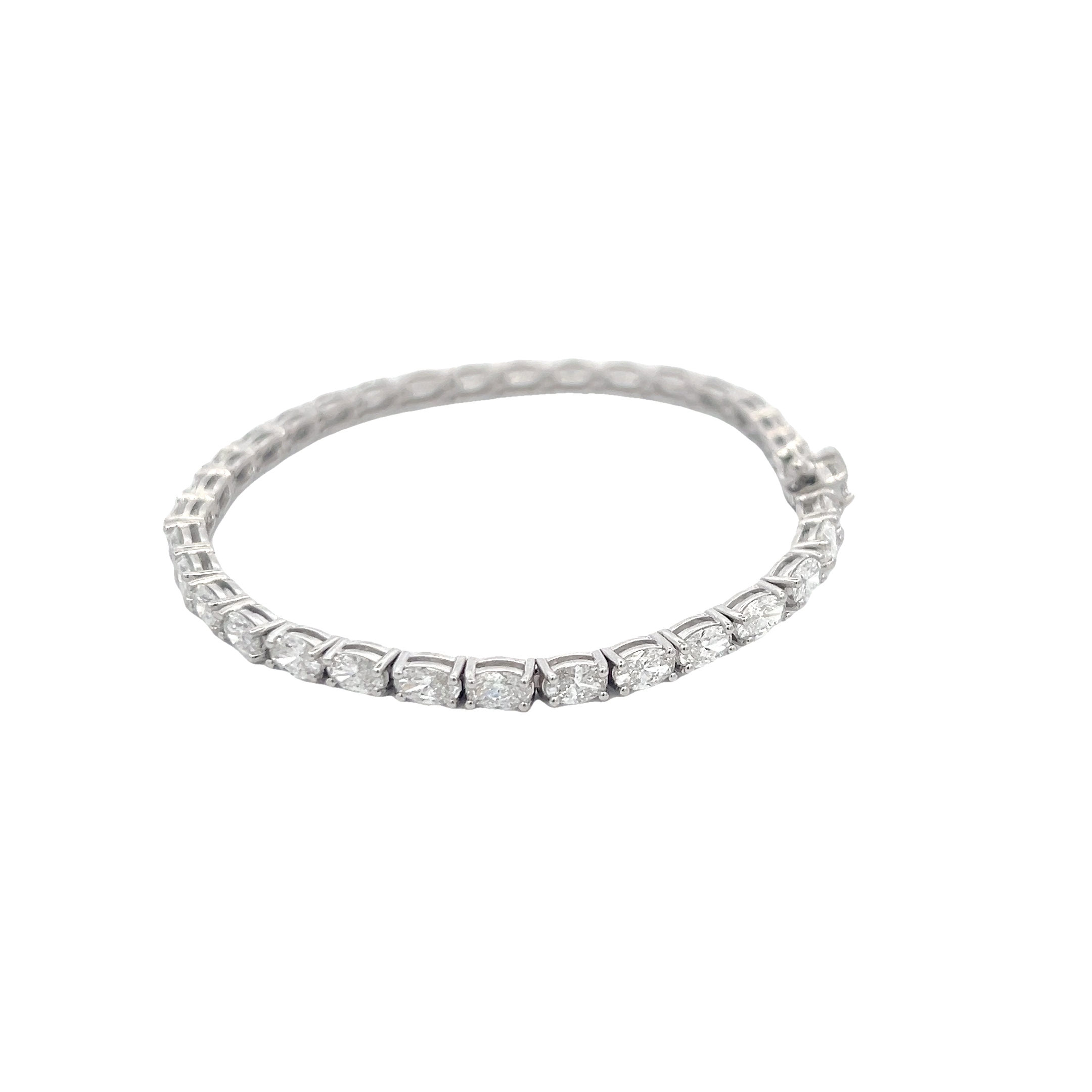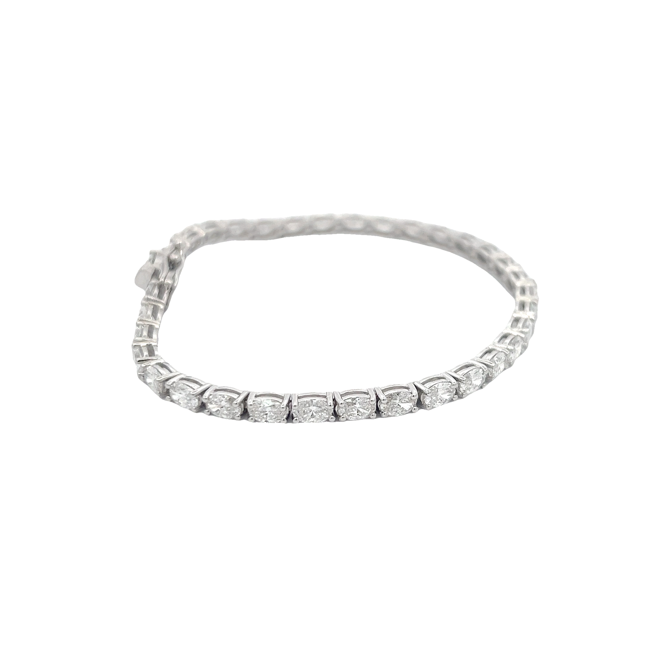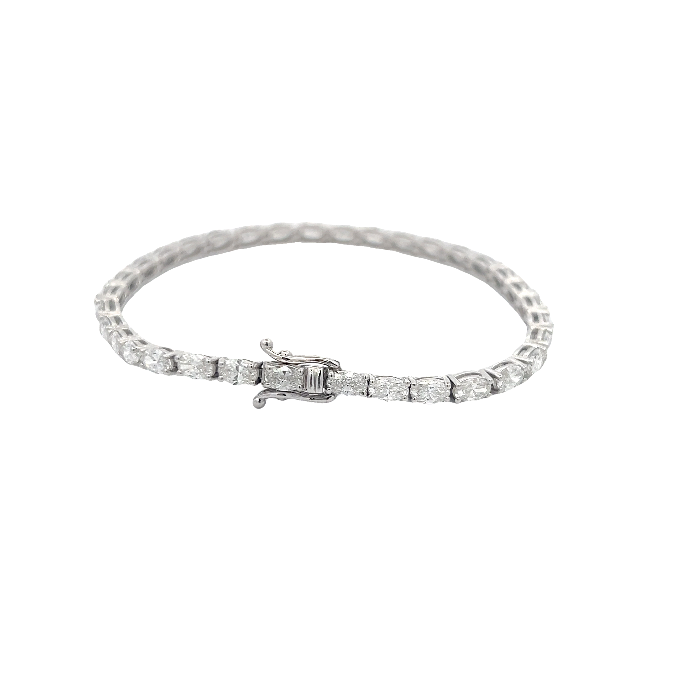 Oval brilliant cut lab-grown diamonds along the length of the bracelet set in 14K white gold, 7 inches long with a double safety clasp.