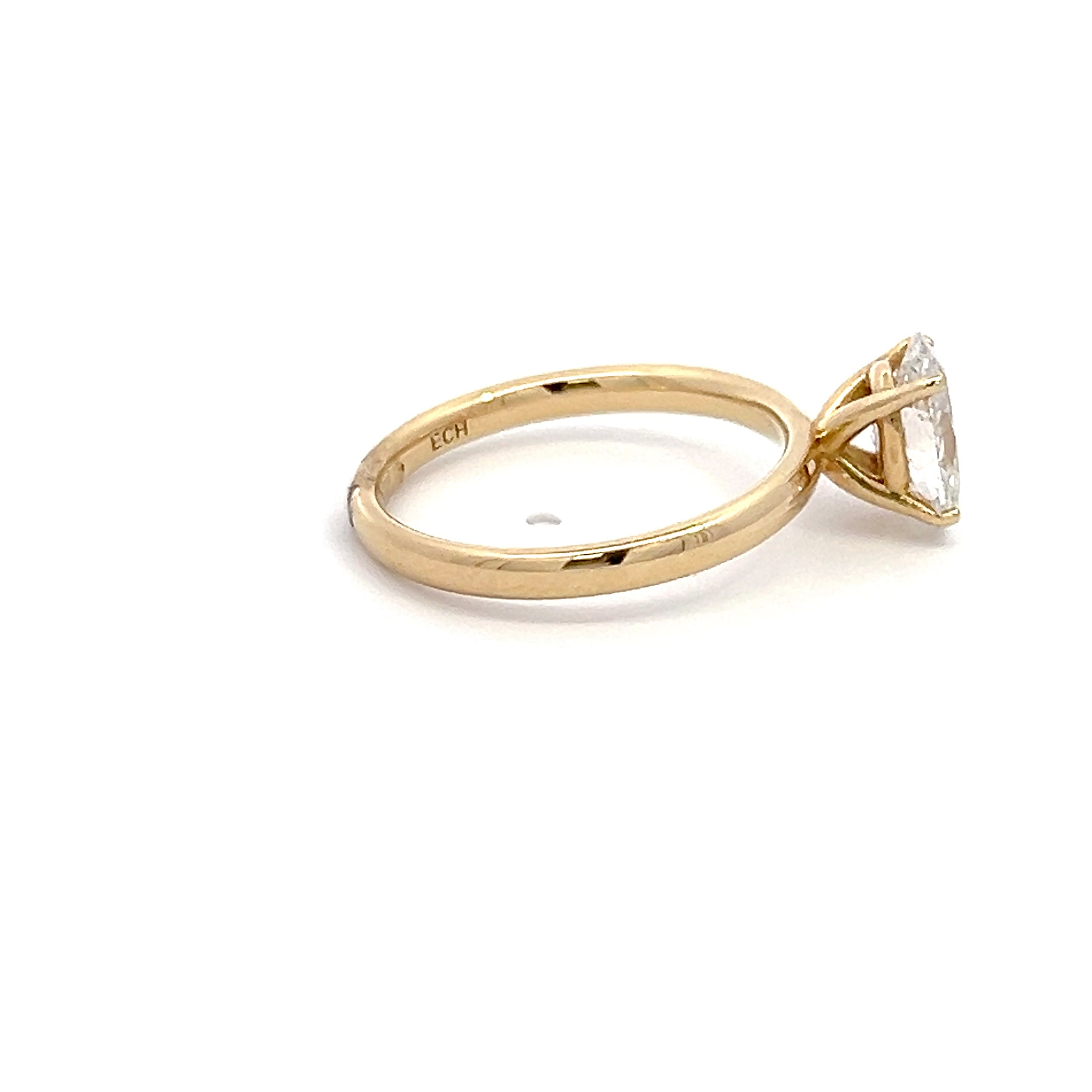 An exquisite engagement ring featuring brilliant oval cut diamond set in 14K gold. Elegantly crafted to symbolize timeless love and commitment.