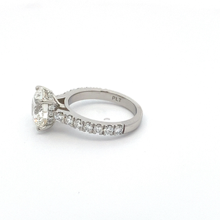An exquisite engagement ring featuring brilliant round cut diamond set in platinum. Elegantly crafted to symbolize timeless love and commitment.
