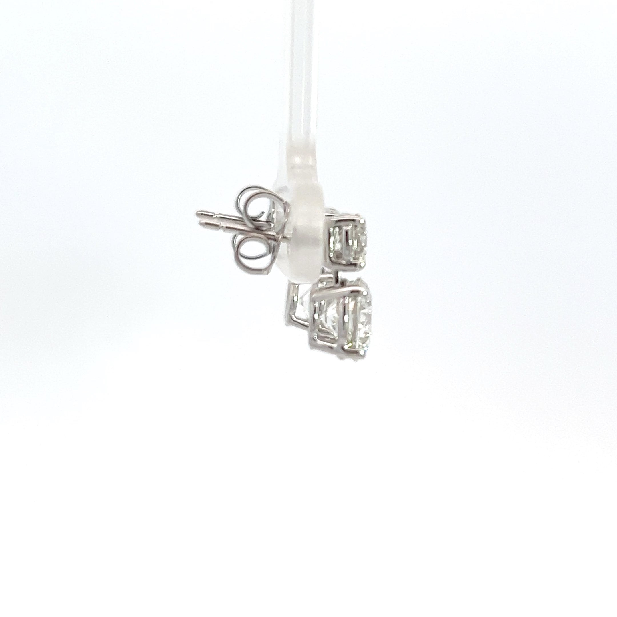 These earrings are crafted in 14k gold and feature a basket setting with four round brilliant cut lab grown diamonds with pushback backings.