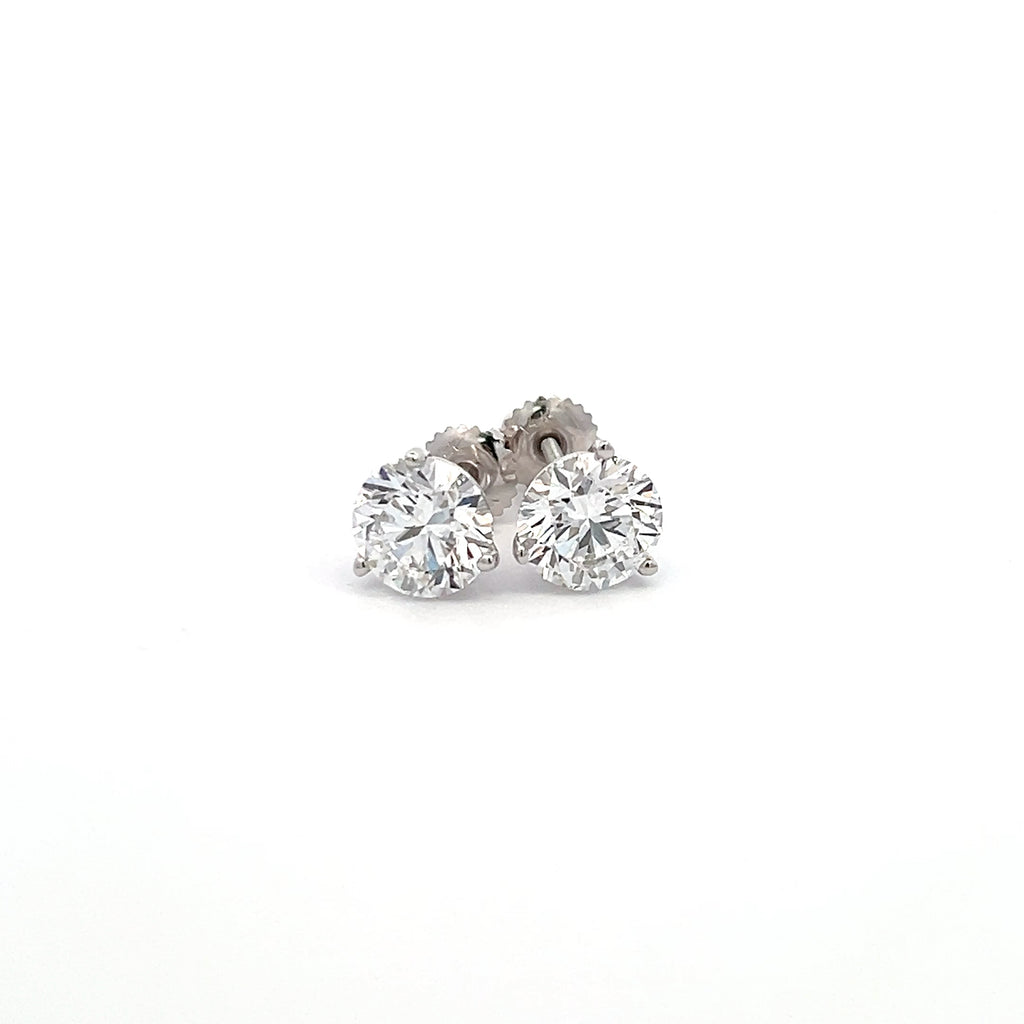 LAB GROWN DIAMOND MARTINI THREE PRONG SCREWBACK STUD EARRINGS - 4.00+ CARATS