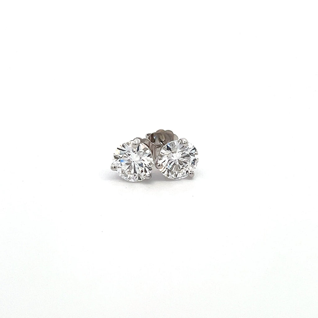 LAB GROWN DIAMOND MARTINI THREE PRONG PUSHBACK STUD EARRINGS - 3.00+ CARATS