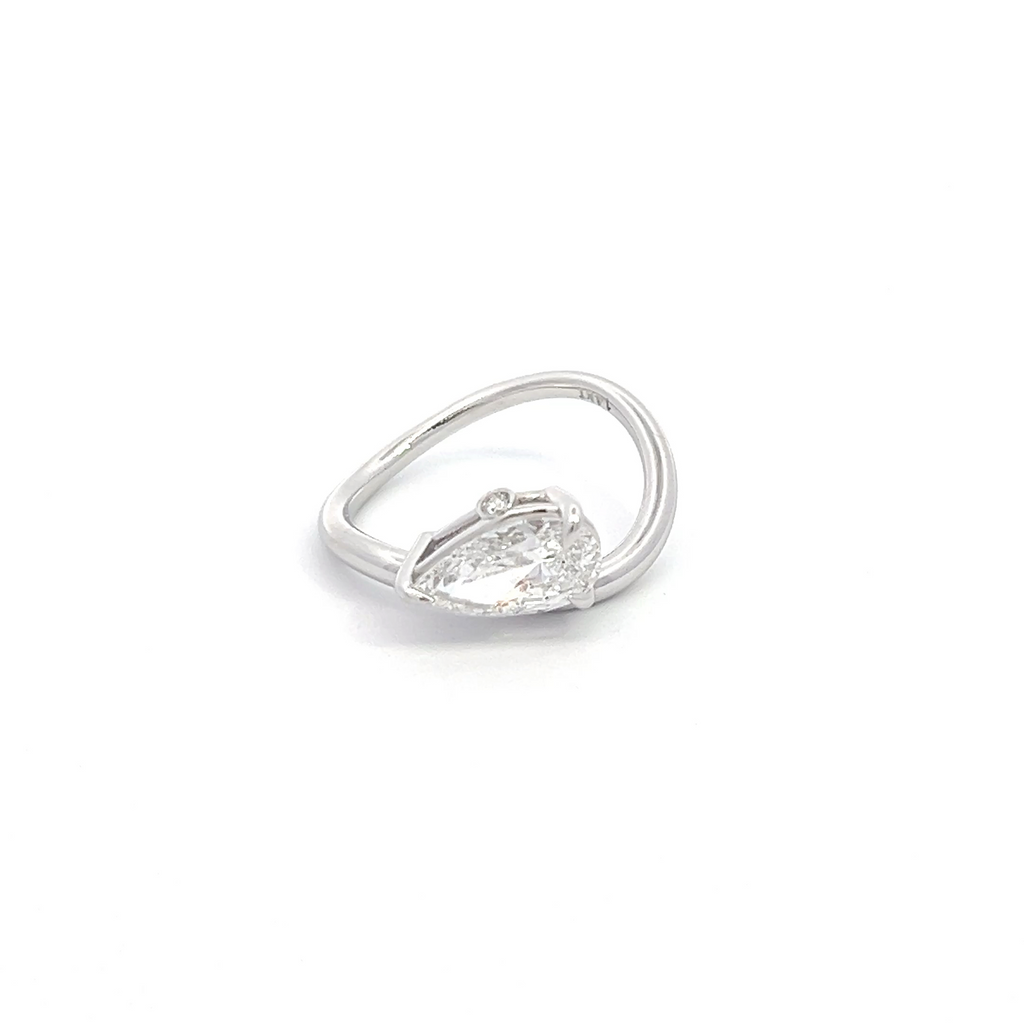 An exquisite ring featuring brilliant pear cut diamond set in 14K white gold.