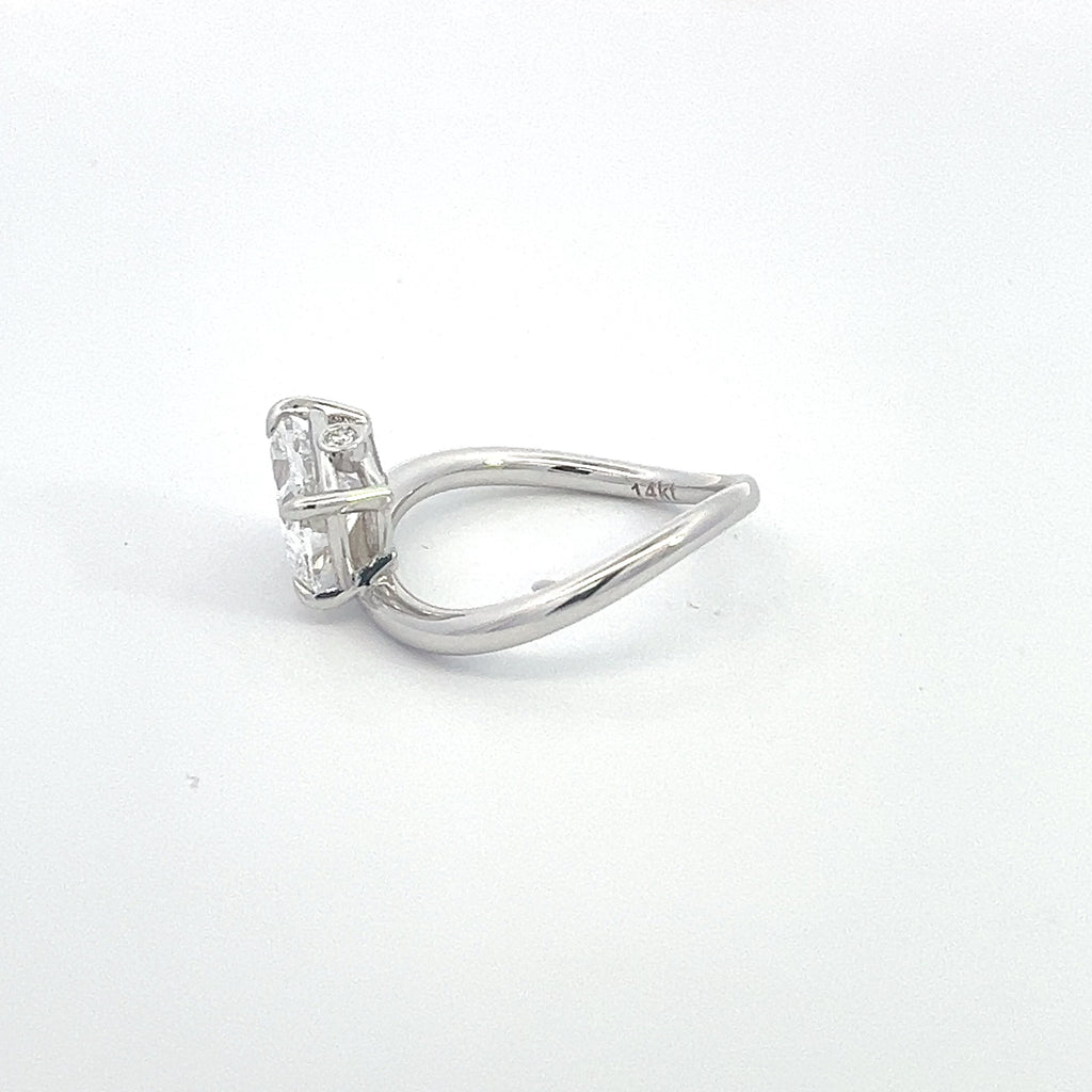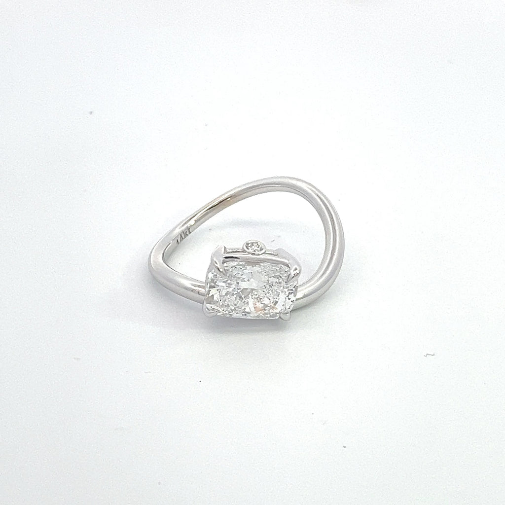 An exquisite ring featuring brilliant cushion cut diamond set in 14K white gold.