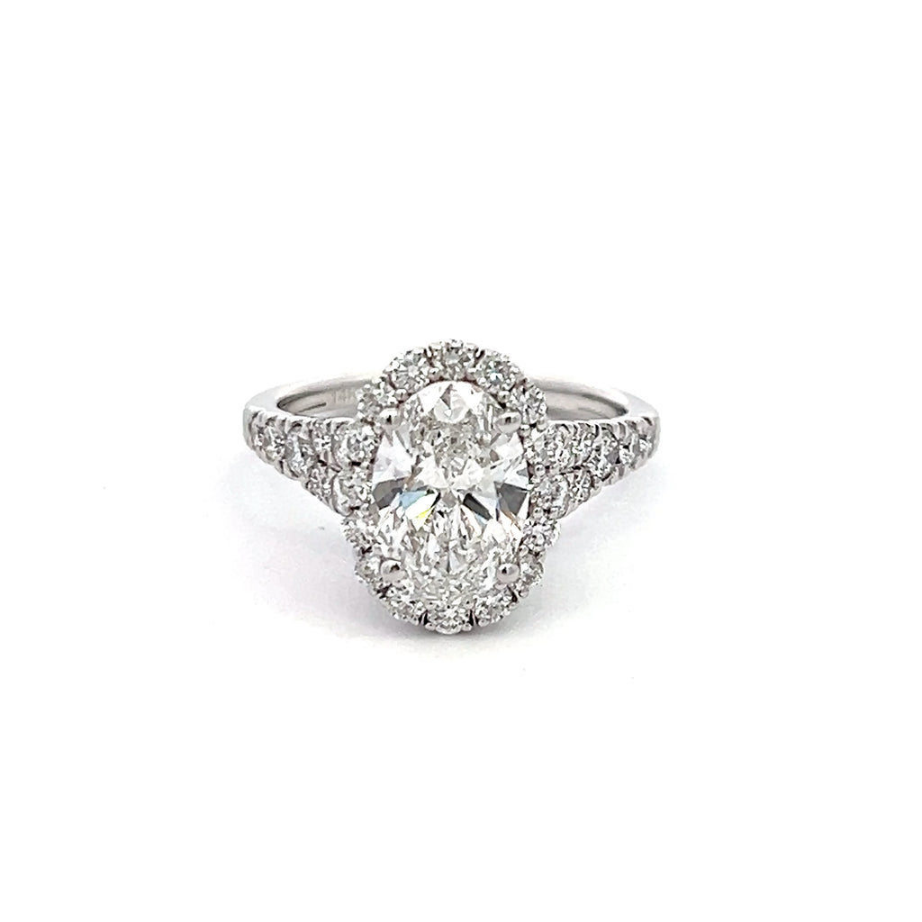 An exquisite engagement ring featuring brilliant oval cut diamond set in 14K gold. Elegantly crafted to symbolize timeless love and commitment.