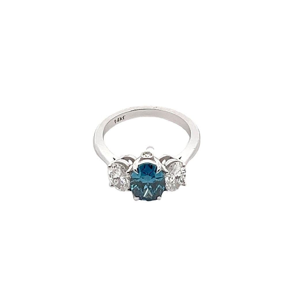 An exquisite engagement ring featuring brilliant oval cut diamond set in 14K gold. Elegantly crafted to symbolize timeless love and commitment.