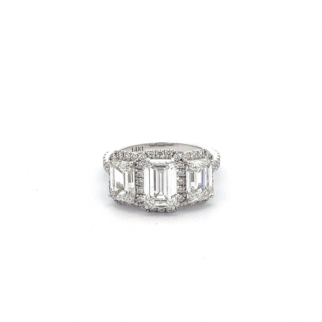 An exquisite engagement ring featuring brilliant emerald cut diamond set in 14K gold. Elegantly crafted to symbolize timeless love and commitment.