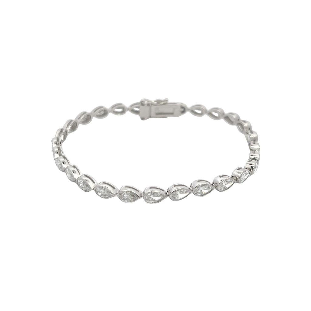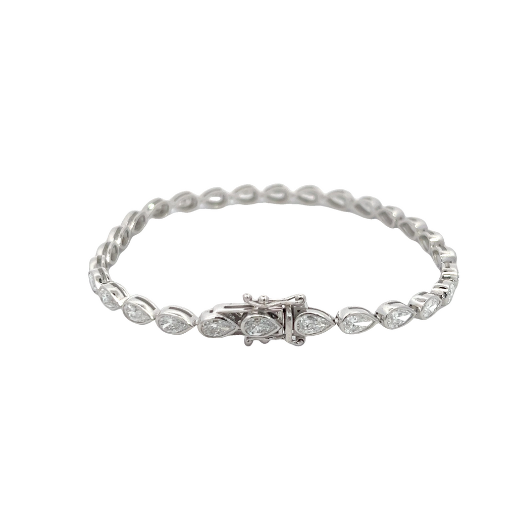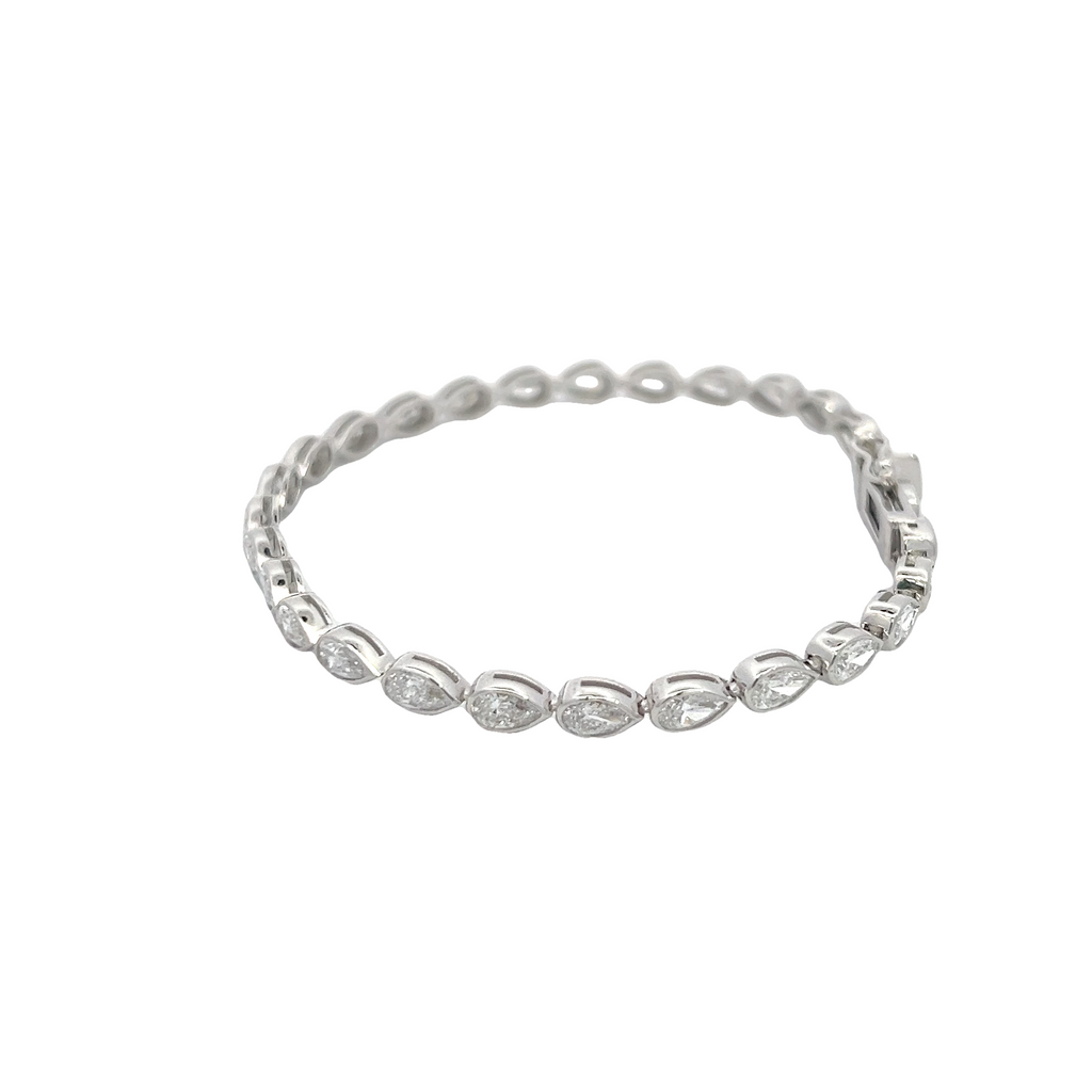 Pear brilliant cut lab-grown diamonds along the length of the bracelet set in 14K gold, 7 inches long with a double safety clasp.