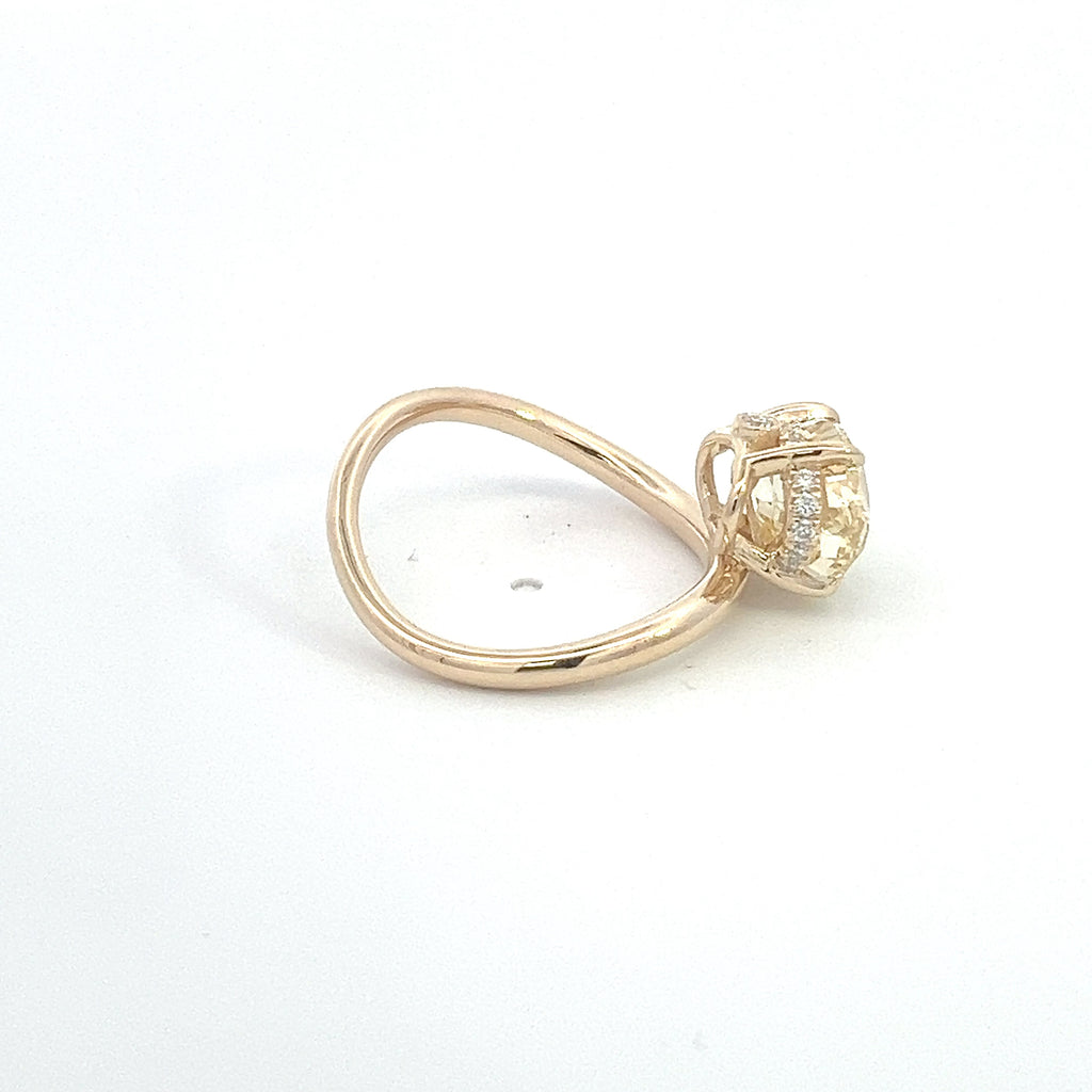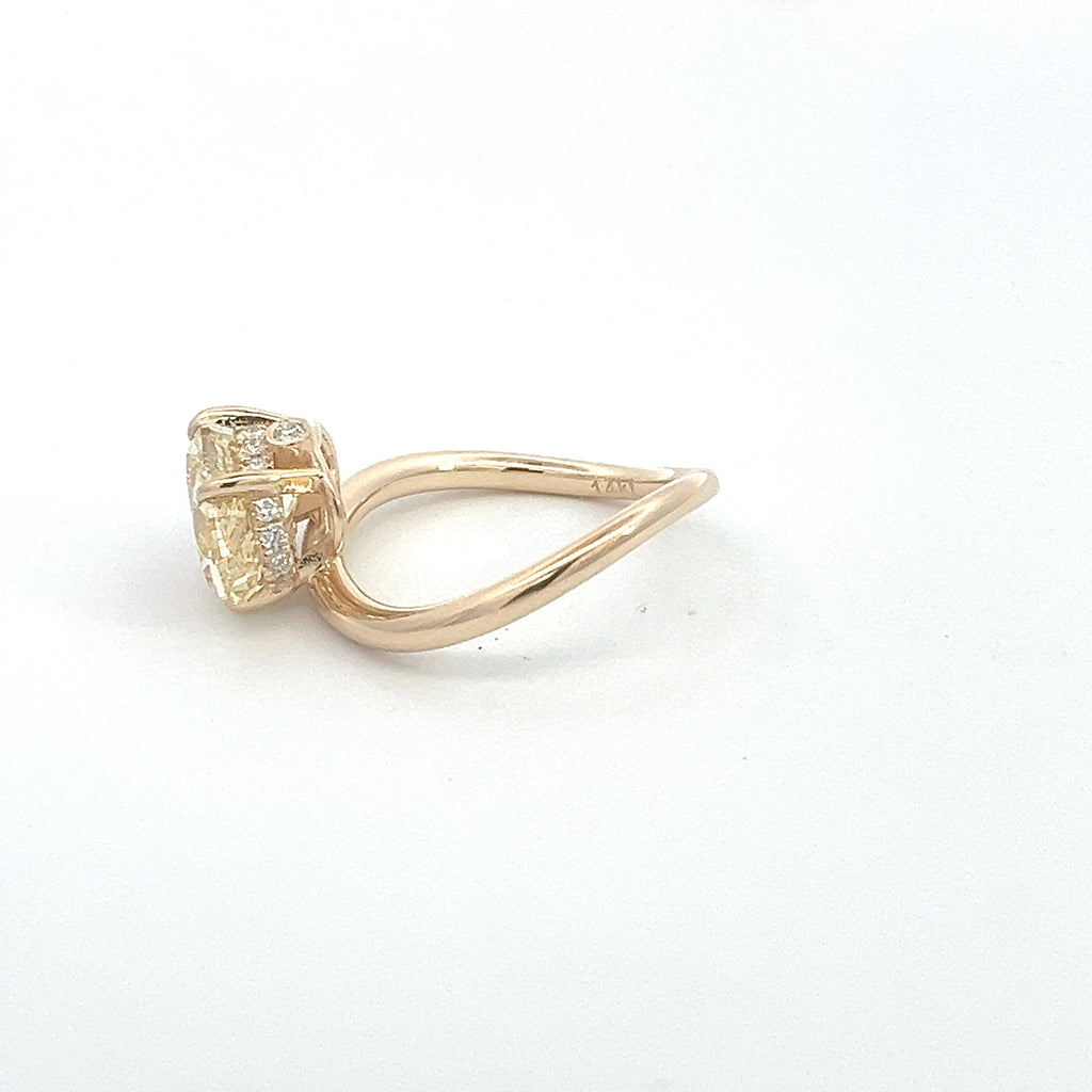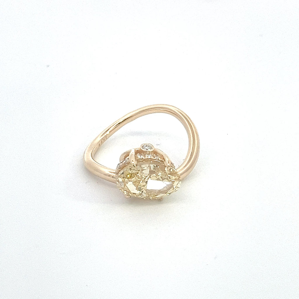 An exquisite ring featuring brilliant oval cut diamond set in 14K yellow gold.