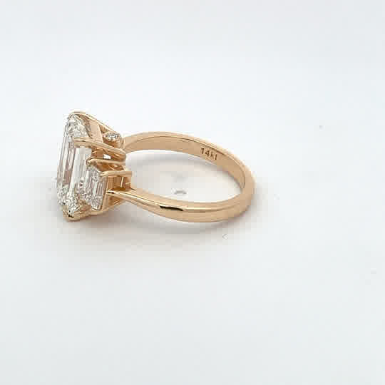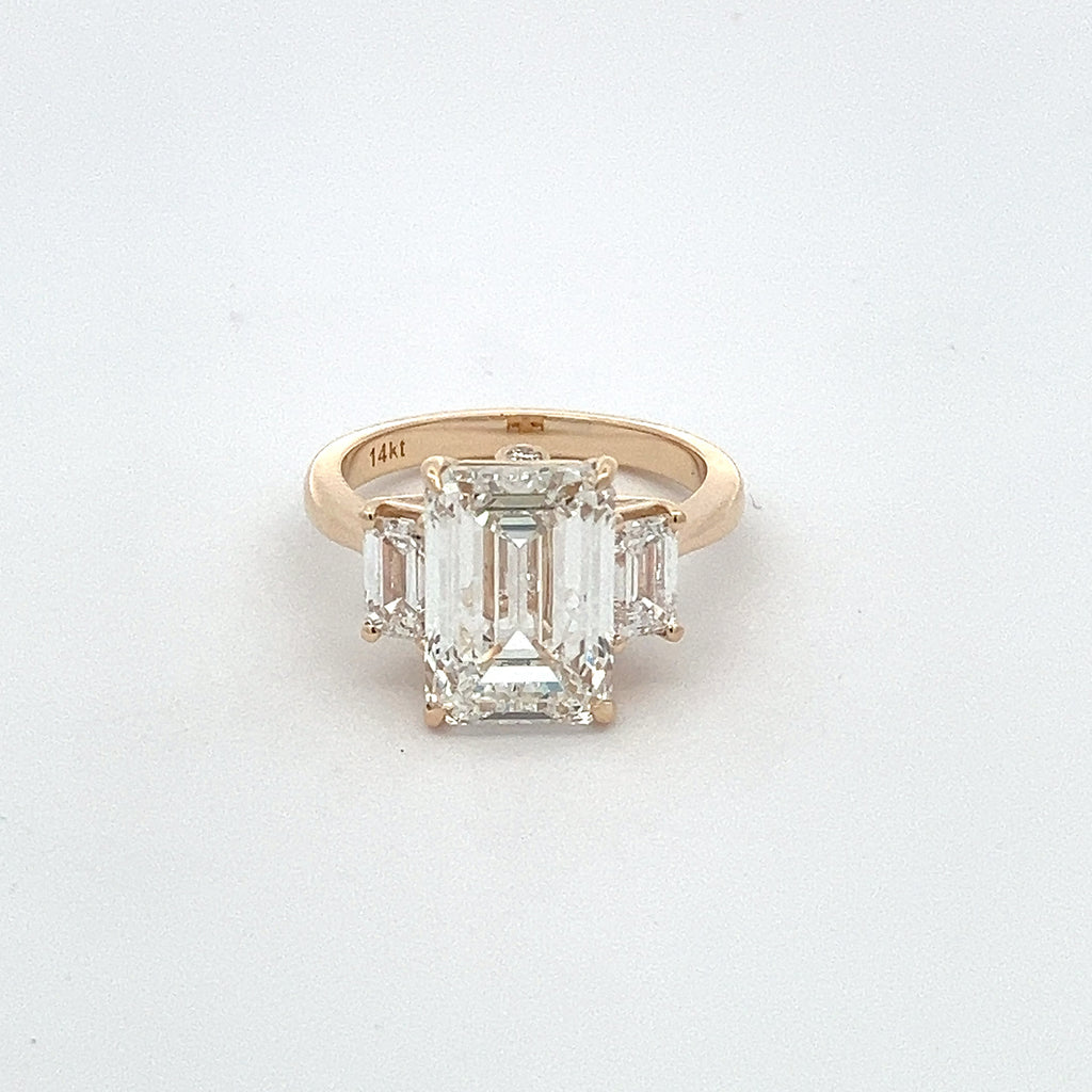 An exquisite engagement ring featuring brilliant emerald cut diamond set in 14K gold. Elegantly crafted to symbolize timeless love and commitment.
