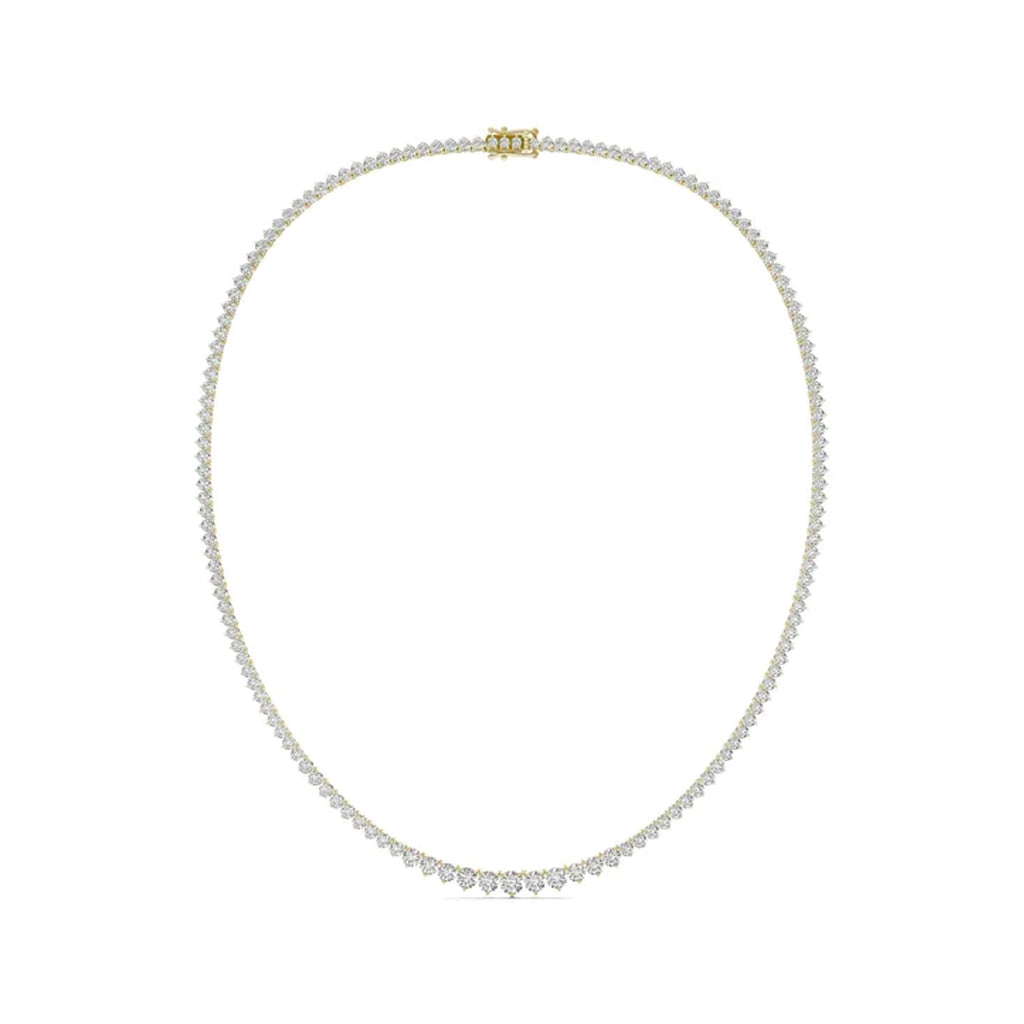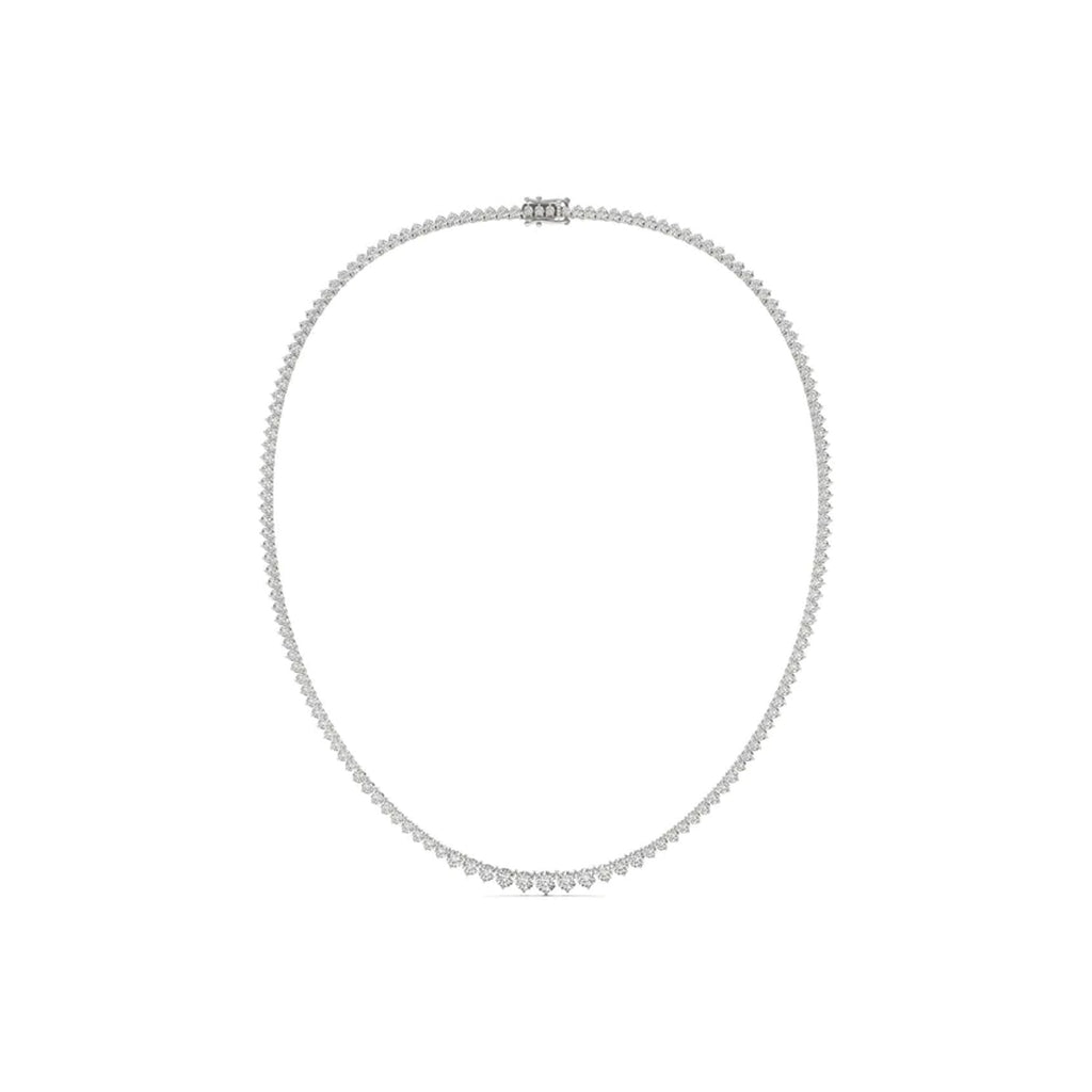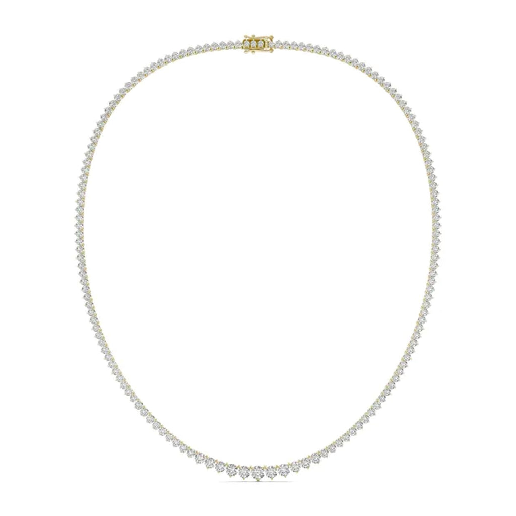 This graduated tennis necklace is absolutely gorgeous. Suitable for any occasion, this diamond tennis necklace features lab grown round brilliant cut diamonds.