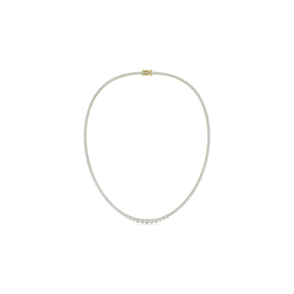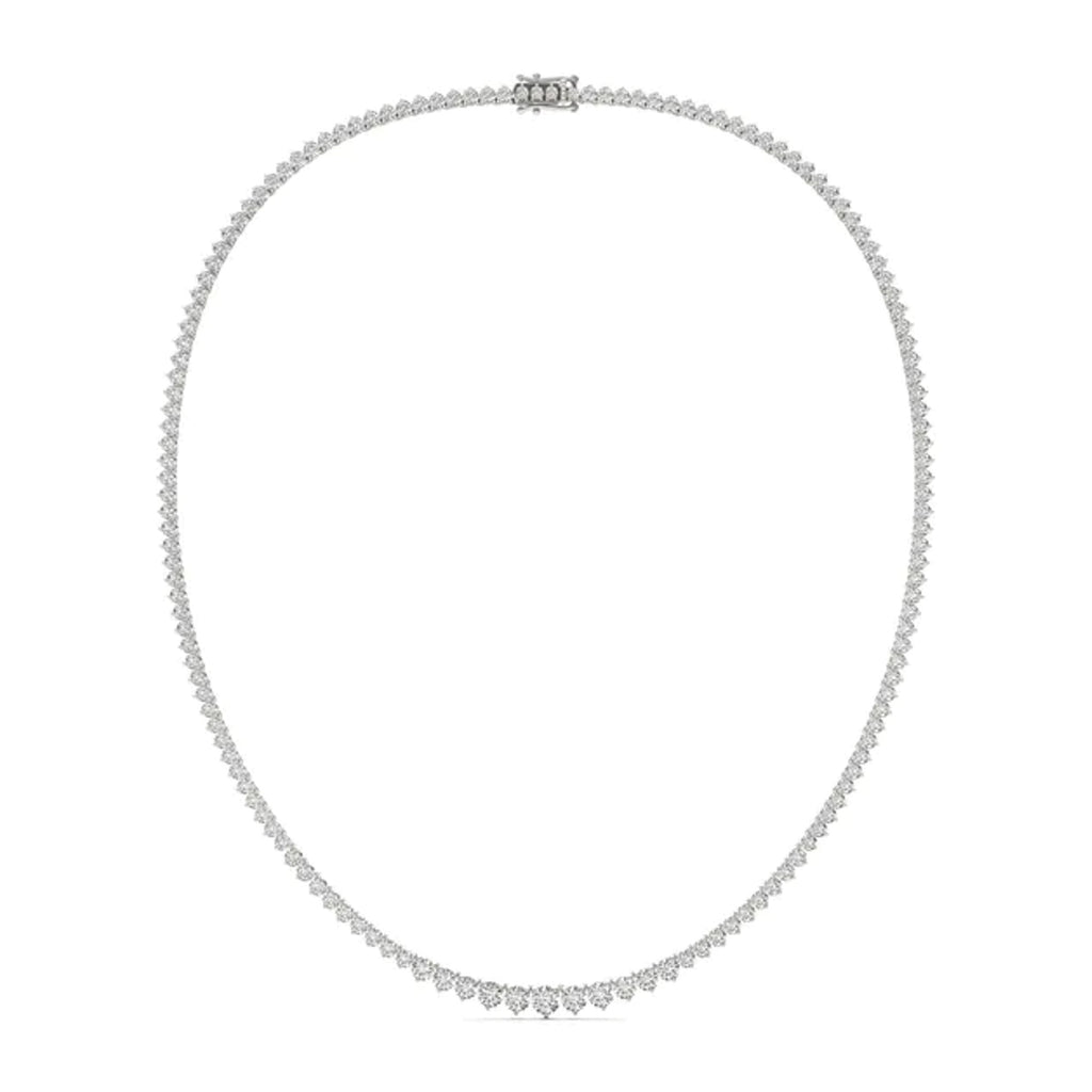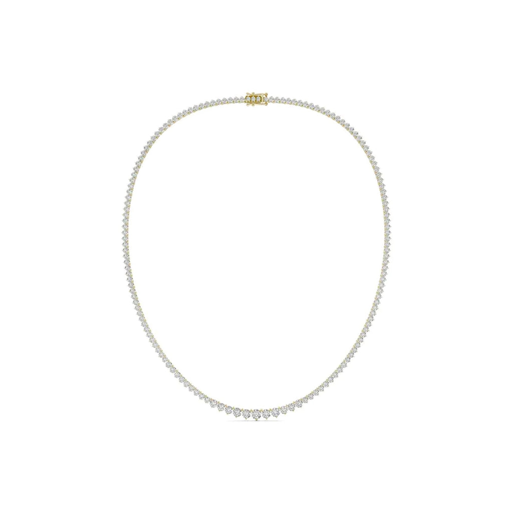 This graduated tennis necklace is absolutely gorgeous. Suitable for any occasion, this diamond tennis necklace features lab grown round brilliant cut diamonds.