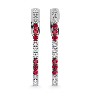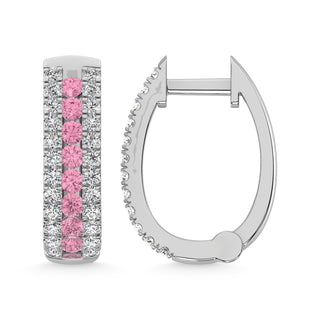 14K Two Tone Lab Grown 5 5/8 Ct.Tw. Outside White and Inside Pink Emerald Hoop Earrings