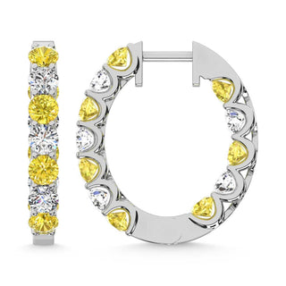 14K White Gold 3 Ct.Tw. Alternate White and Yellow Lab Grown Diamond Hoop Earrings